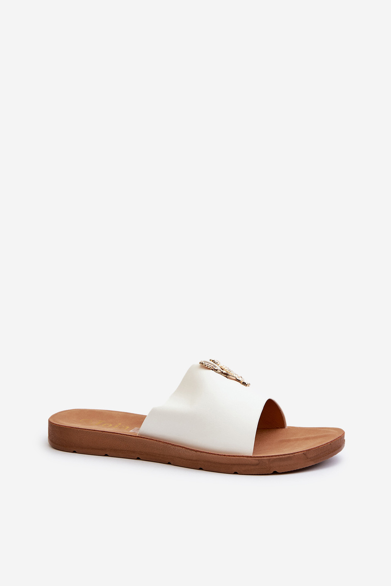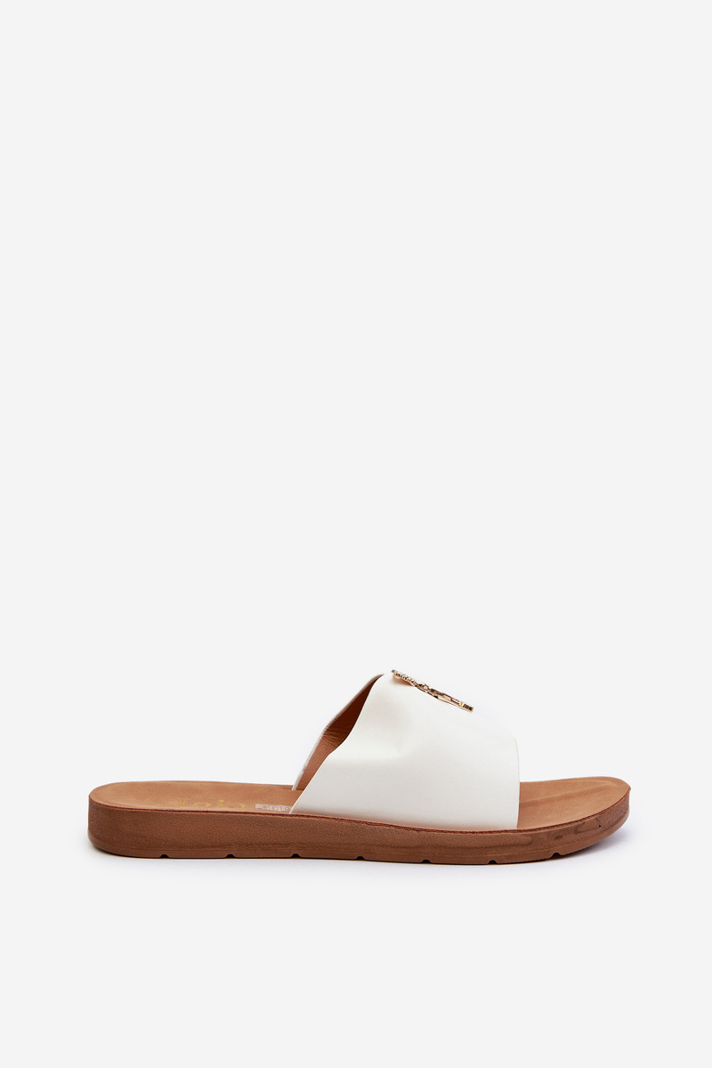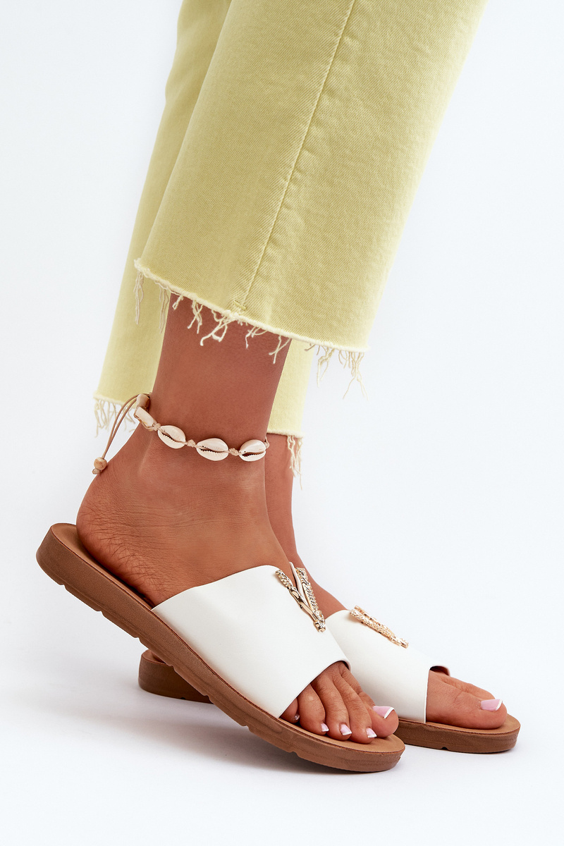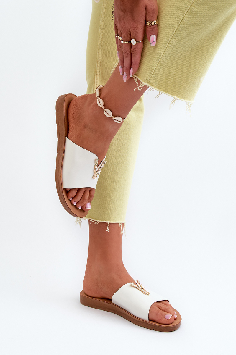 Жіночі босоніжки на плоскій підошві з оздобленням з екошкіри білі Makia