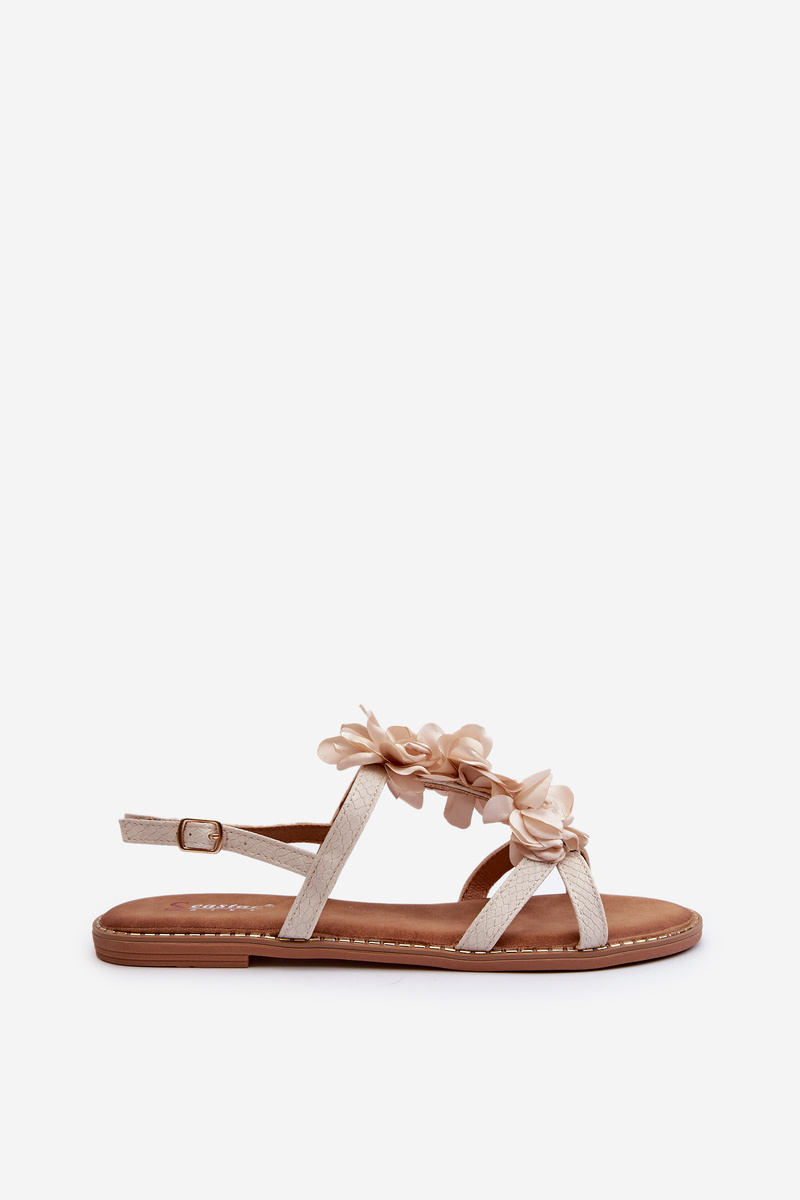 Жіночі босоніжки на плоскій підошві, прикрашені квітами, бежеві Abidina