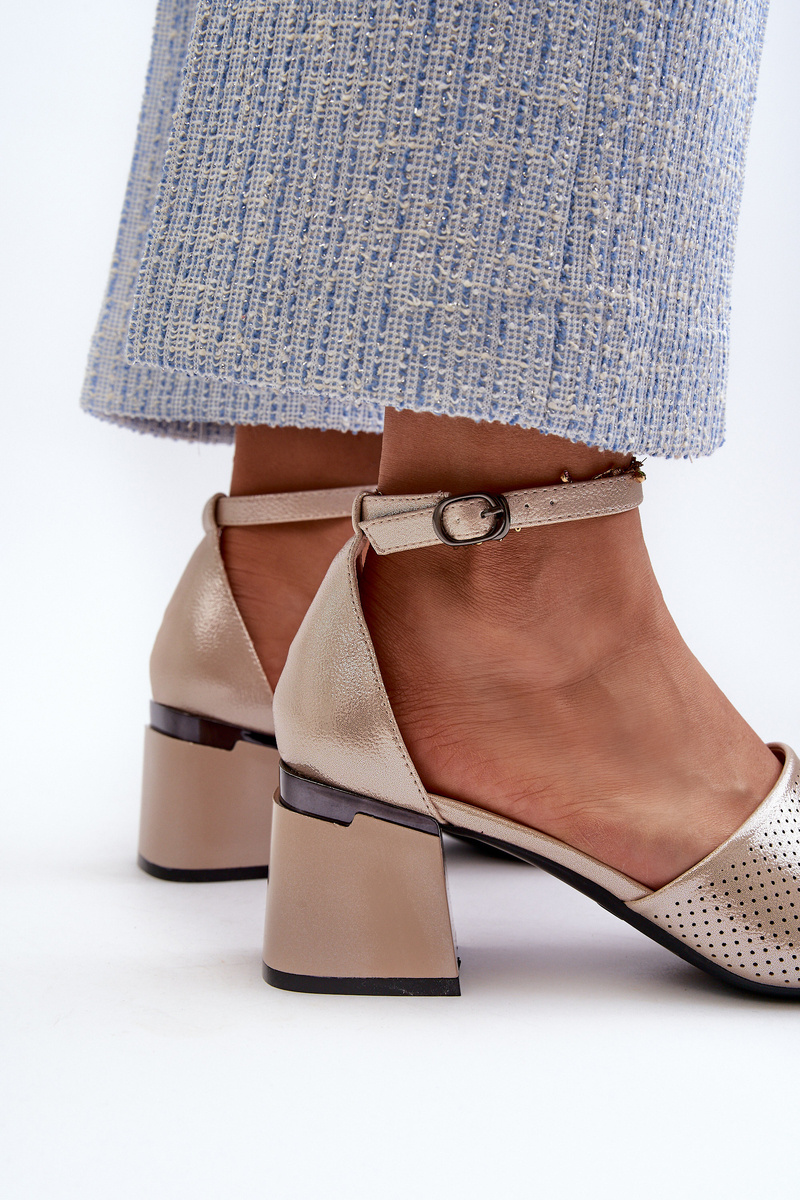 Жіночі босоніжки на підборах з еко шкіри золотого кольору Horissa