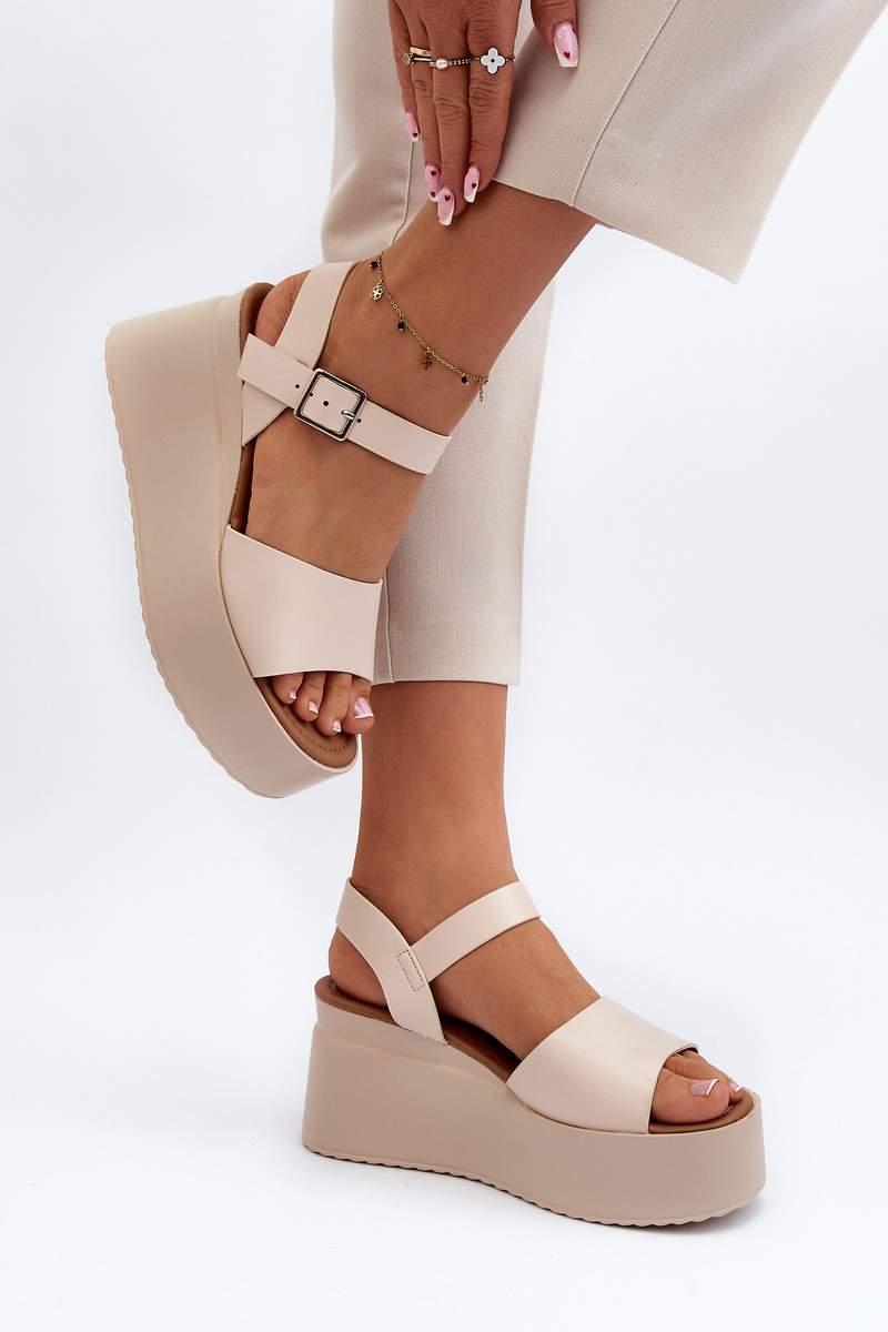 Жіночі босоніжки на танкетці бежевого кольору Geferia