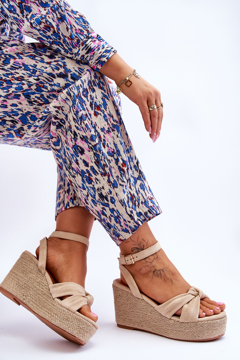 Класикою жіночого літнього взуття є босоніжки на танкетці. Танкетка була прикрашена джутовою тасьмою. М'яка устілка з екошкіри забезпечує високий комфорт використання. Верх виконаний з м'якої екошкіри. Взуття застібається на регульований ремінець з пряжкою. Ці босоніжки - ідеальний вибір для літнього стилю. Обираючи розмір, орієнтуйтеся на таблицю розмірів.