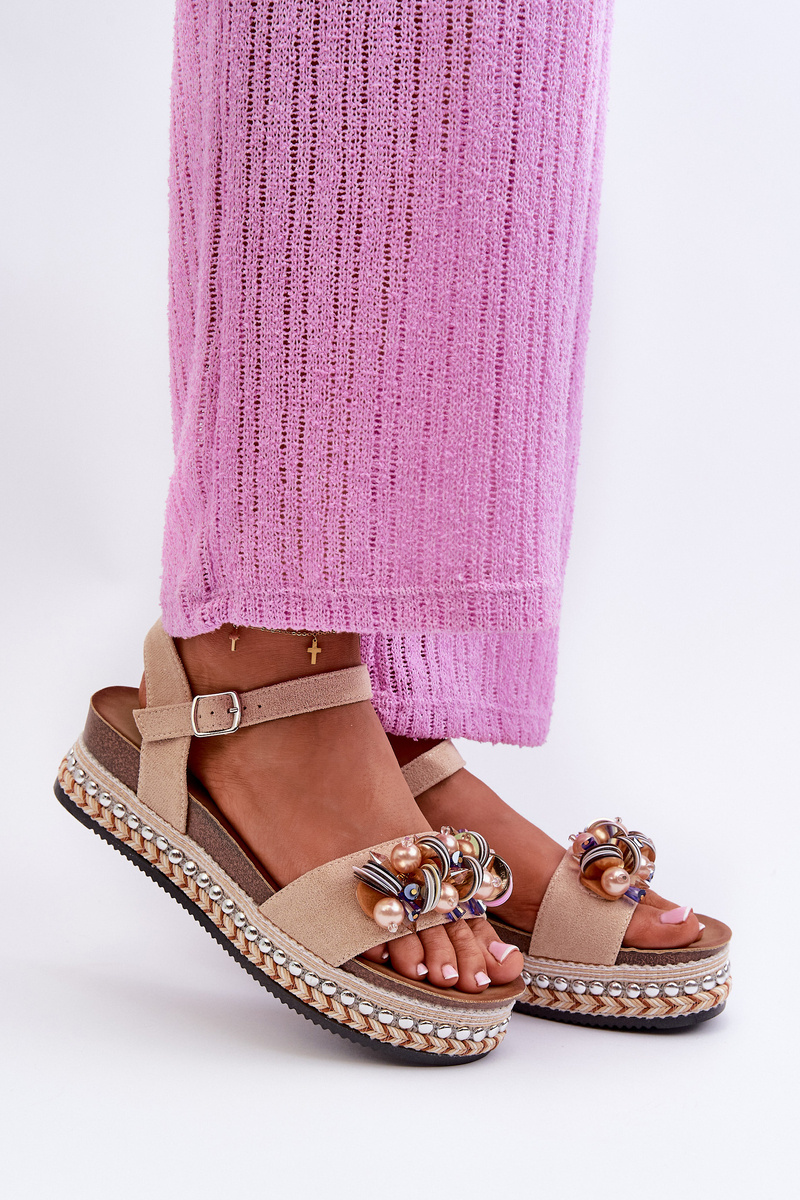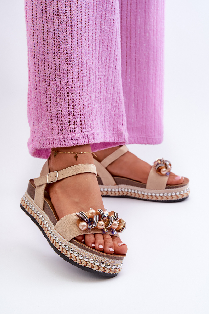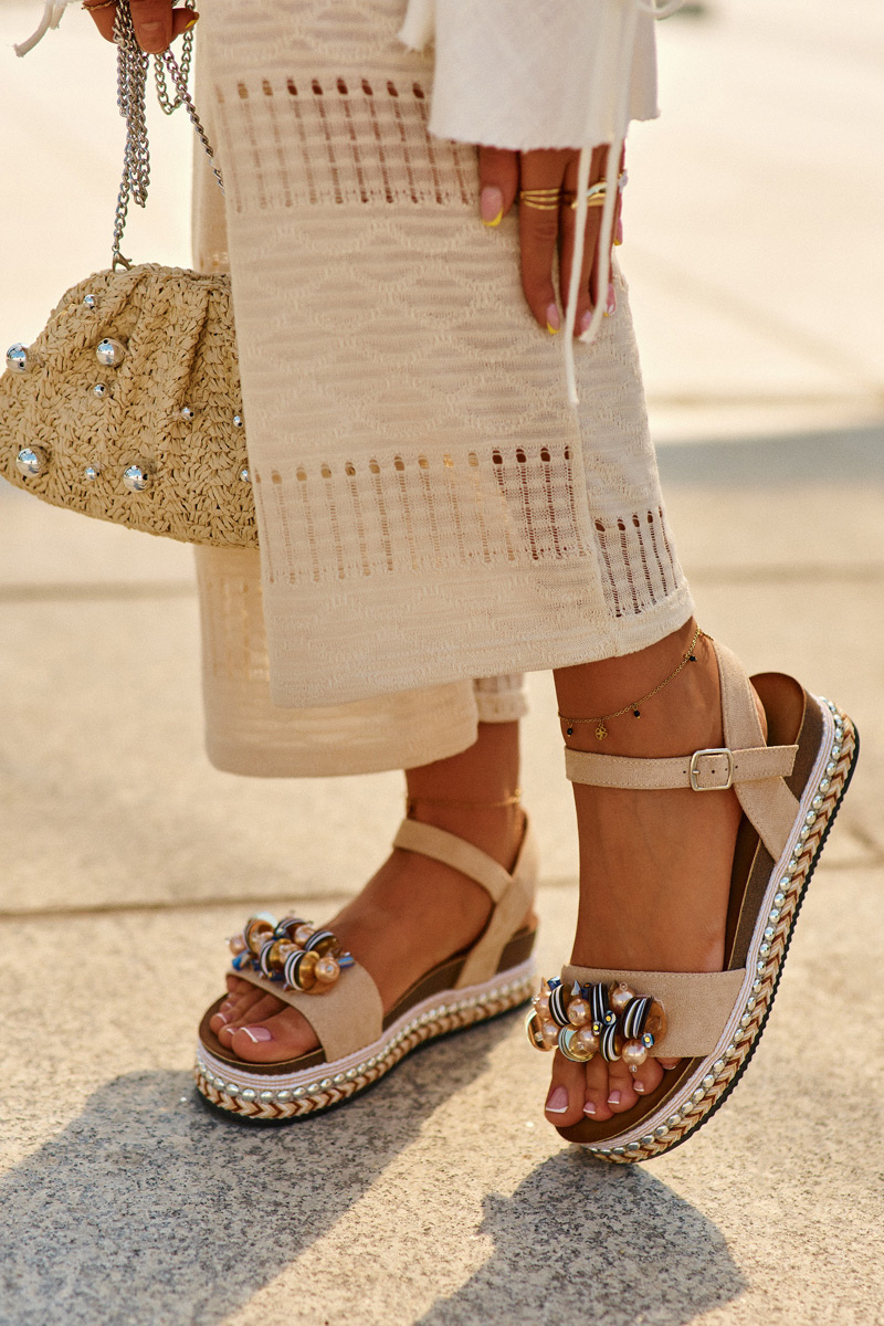 Жіночі босоніжки на танкетці та платформі з декором S.Barski HY056 Бежеві