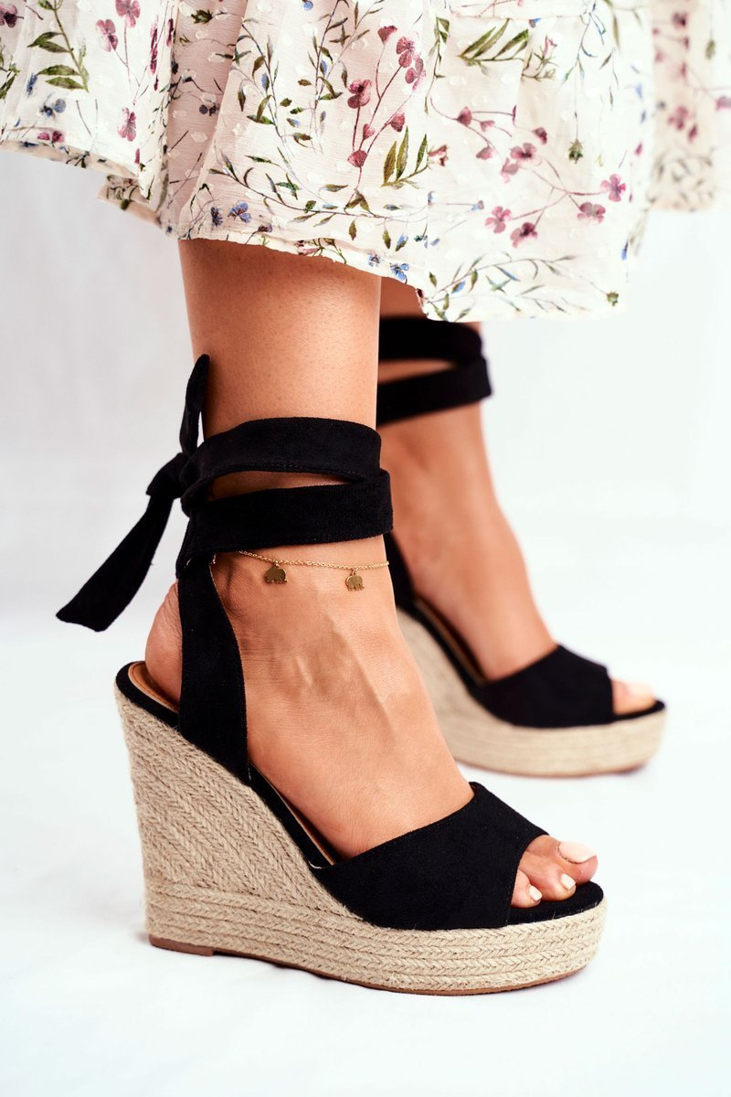 Високе взуття - це не тільки високі підбори, якщо ви любите іноді парити над землею, подивіться, що ми маємо для вас. Унікальні босоніжки на танкетці, які завдяки високій танкетці та платформі 3,5 см підтягнуть вашу фігуру. Повністю виготовлений з еко-замші в декількох прекрасних кольорах, що дає нам багато можливостей для створення красивих стилів. Легко одягається завдяки пряжці навколо щиколотки. Танкетка прикрашена плетеним шнурком. Під час вибору розміру пропонуйте таблицю розмірів.