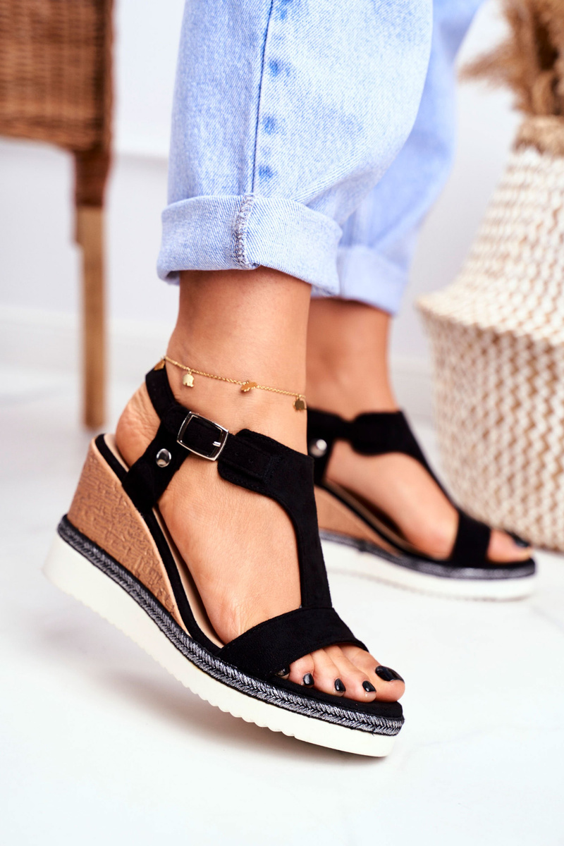 Ідеальні босоніжки на літо! Високе взуття, незважаючи на 9-сантиметровий каблук у вигляді танкетки, є надзвичайно зручним і стійким, і в той же час неймовірно модним і виразним. М'яка устілка, регулюється по щиколотці у вигляді ремінця з пряжкою. Танкетка ідеально підкреслить вашу фігуру. Під час вибору розміру пропонуйте таблицю розмірів.