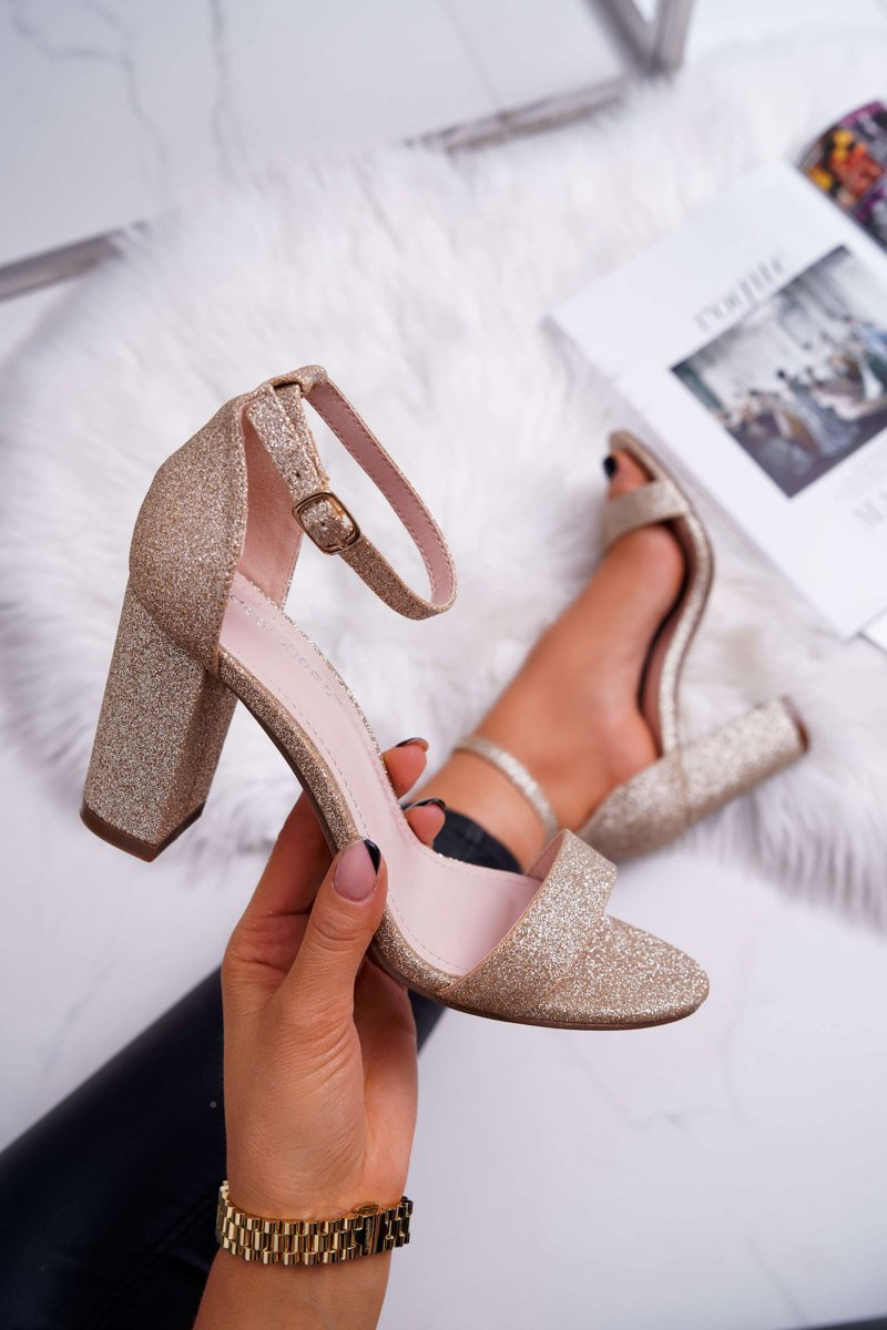 Жіночі босоніжки на шпильці Парчовий Золотий Берглат