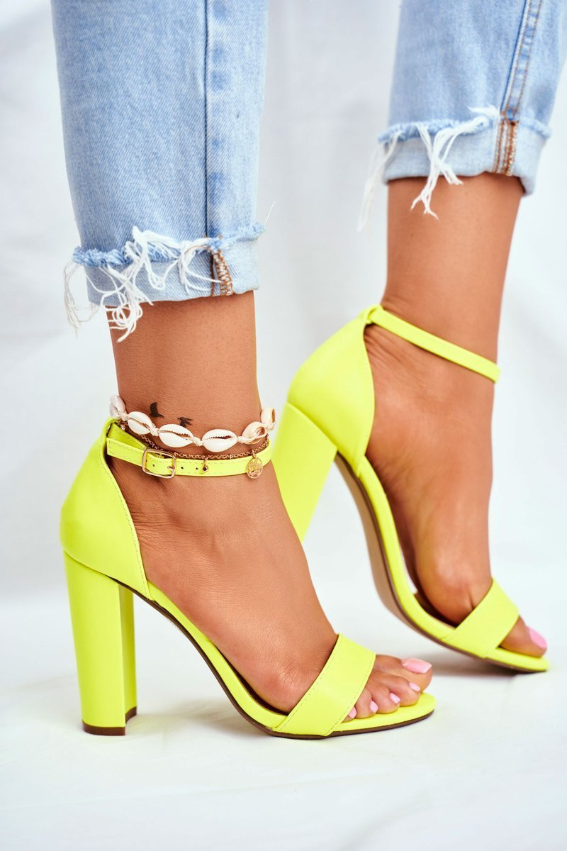 Жіночі босоніжки на шпильці жовті неонові Anastasie