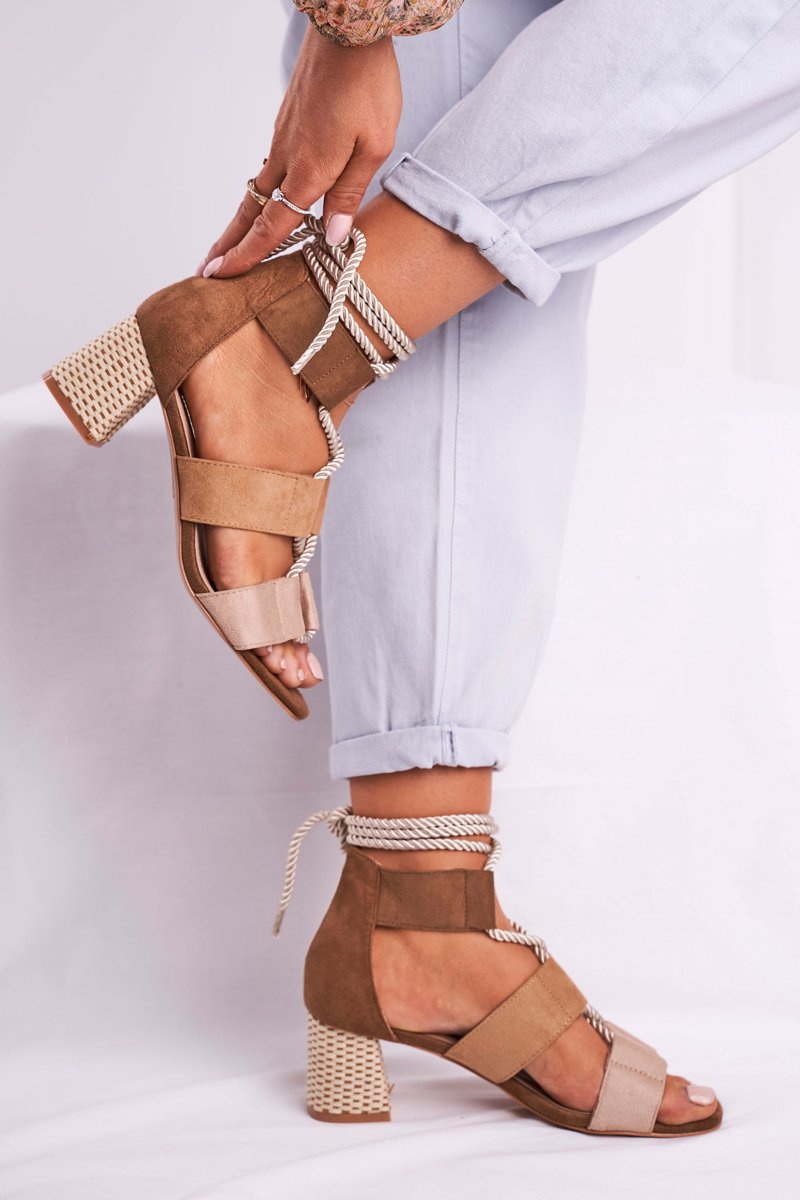 Жіночі босоніжки на шпильці замшеві бежеві Beckie