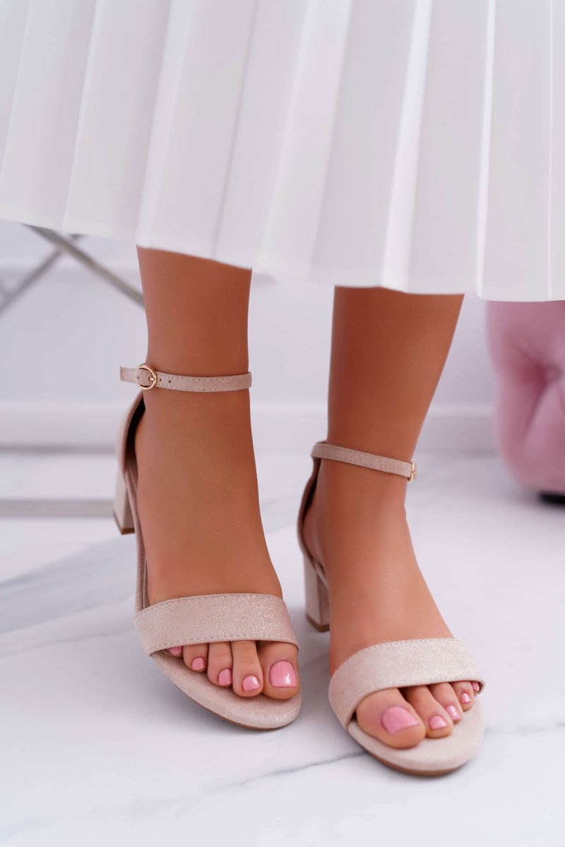 Жіночі босоніжки на шпильці з блискітками бежеві Nathalie