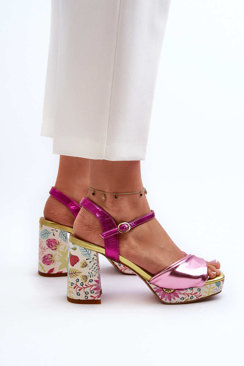 Жіночі босоніжки на шпильці з квітковим принтом D&A CR980, рожеві