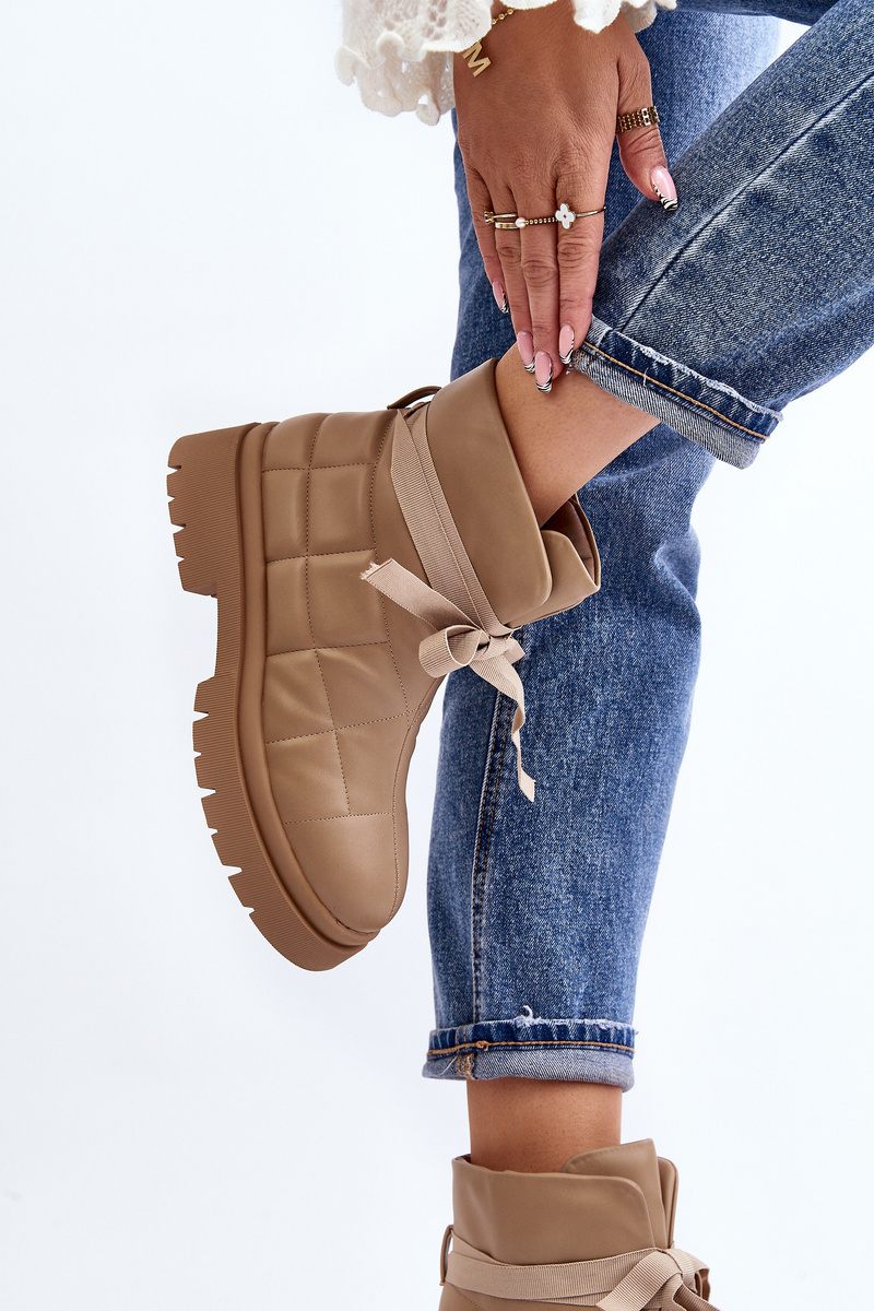 Жіночі ботильйони зі стьобанням і шнурівкою кольору хакі Bizzanti