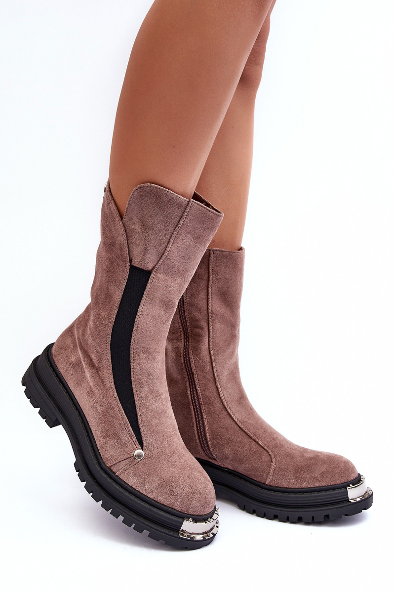Жіночі ботильйони зі штучної замші на плоскій підошві темно-бежевого кольору Palimra