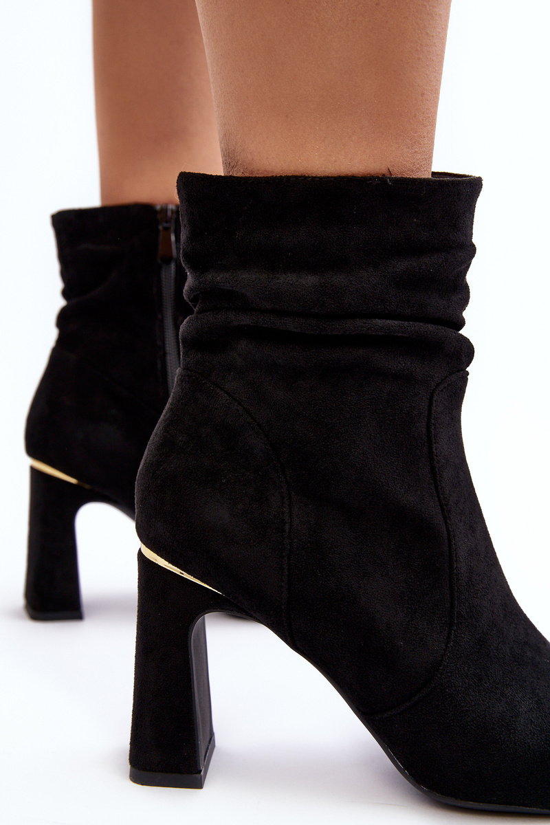 Жіночі ботильйони з еко замші. Комплект на каблуці-стовпчику з дзеркальним елементом. Гострий носок візуально стоншить ваші ноги. Застібається на бічну блискавку. Зібрана щиколотка. Ви точно повинні їх мати! Обираючи розмір, орієнтуйтеся на таблицю розмірів.
