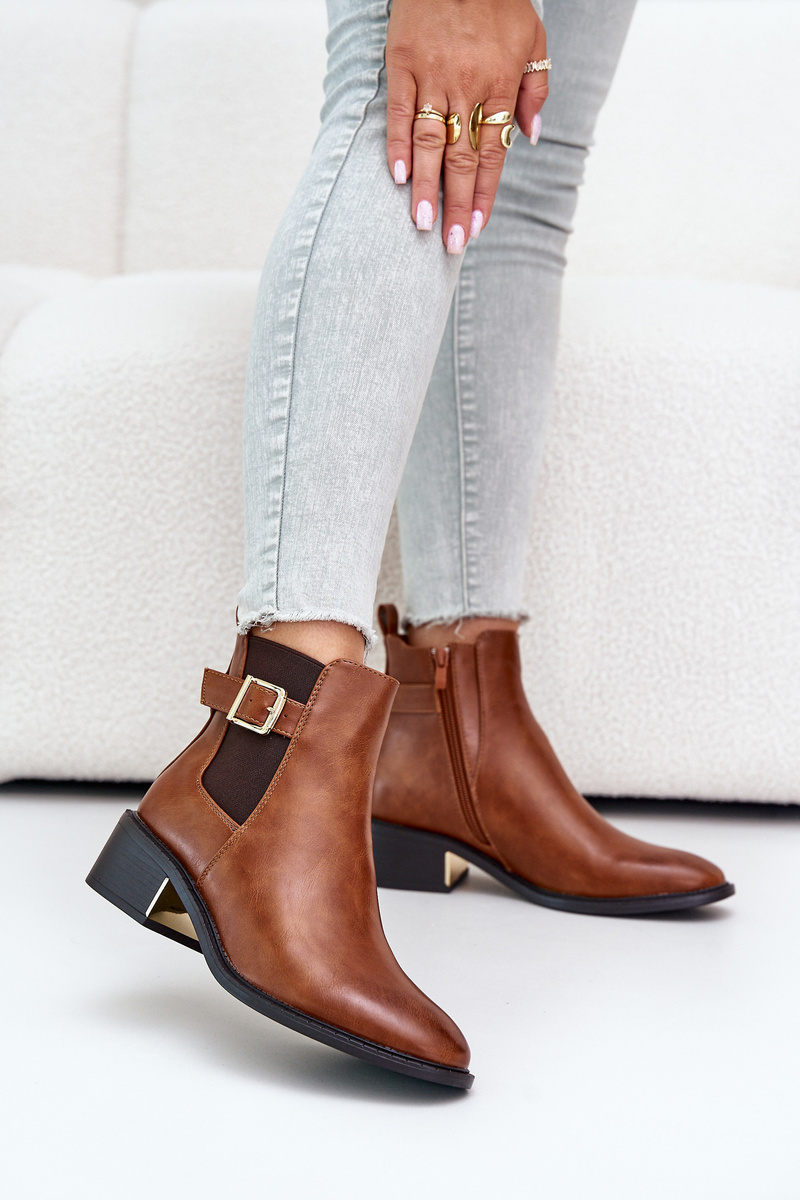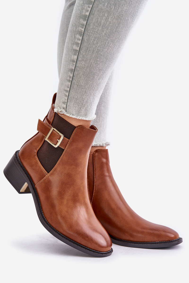 Жіночі ботильйони на невисокому каблуці з золотистою пряжкоюCamel Vomera
