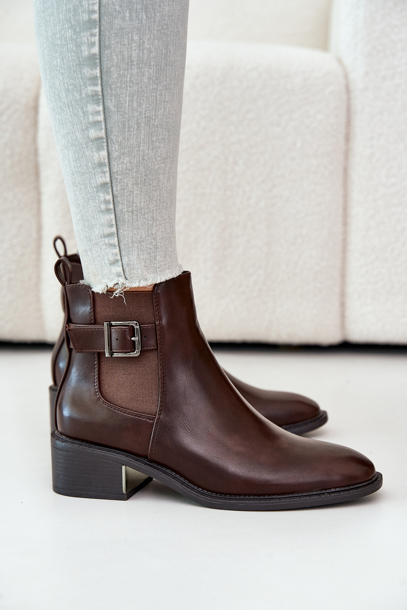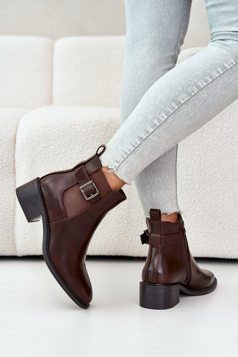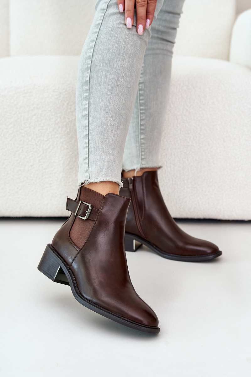 Жіночі ботильйони на низькому каблуці з золотистою пряжкою Коричневий Вомера