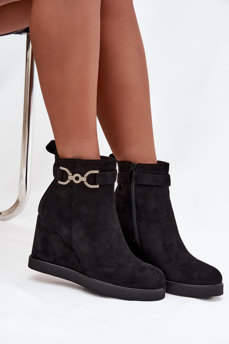 Жіночі ботильйони на платформі з оздоблювальним деталем Чорний Marivana