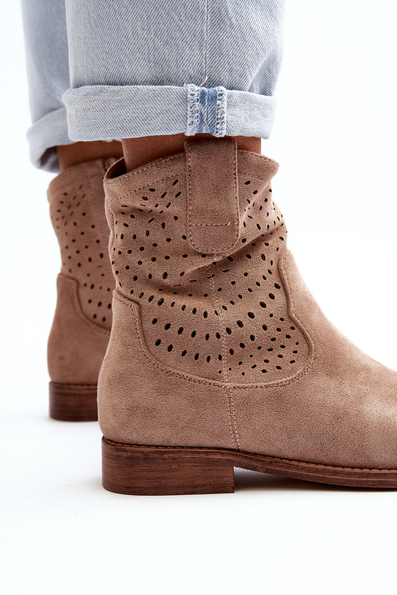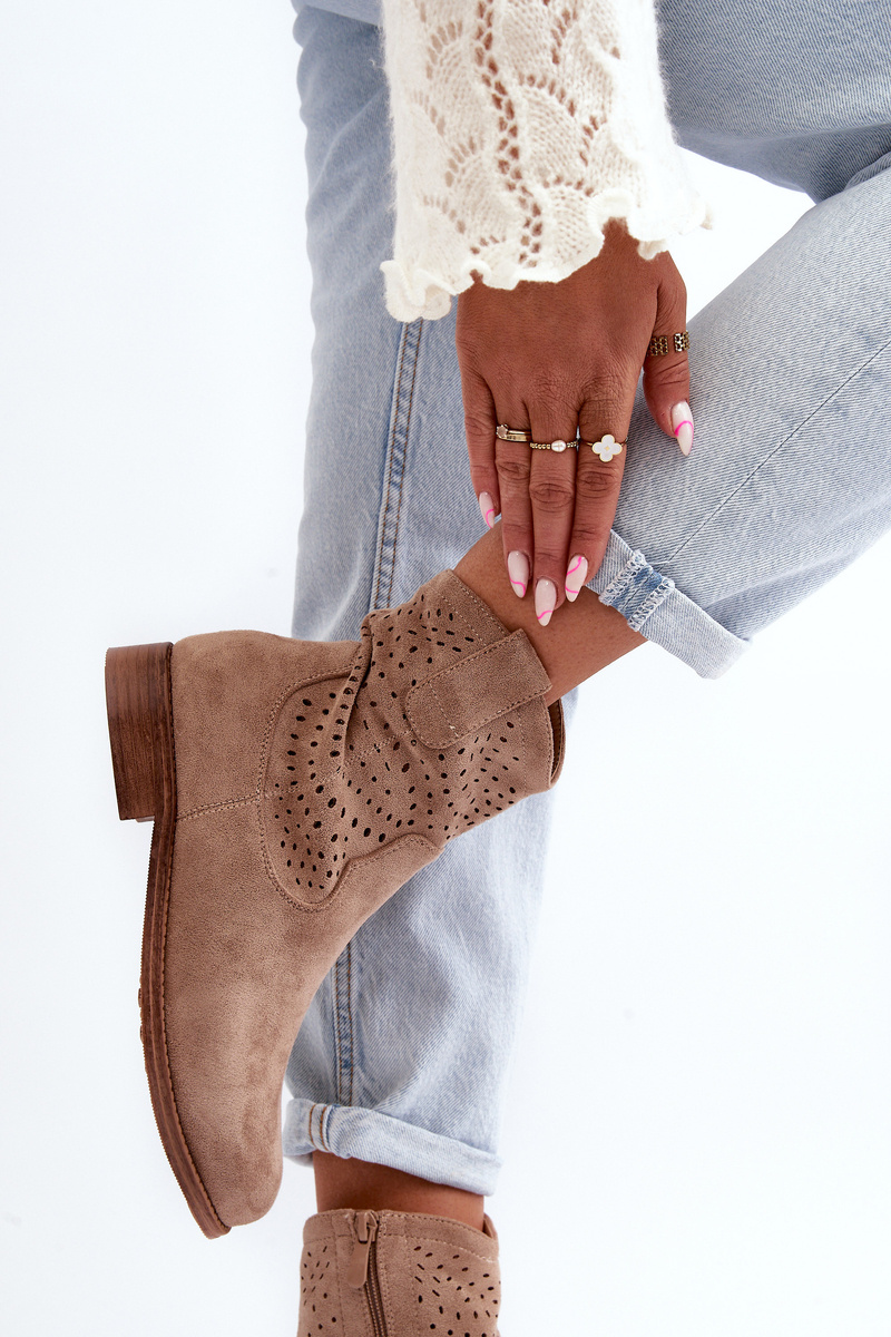 Жіночі ботильйони виготовлені з приємної на дотик еко замші. Модель з гратчастим верхом, що застібається на блискавку. Плоский каблук забезпечить стабільність при кожному кроці. Заокруглені пальці. Ідеально підходить майже для кожної щоденної укладки! Ви обов'язково повинні мати їх у своєму гардеробі! Обираючи розмір, орієнтуйтеся на таблицю розмірів.