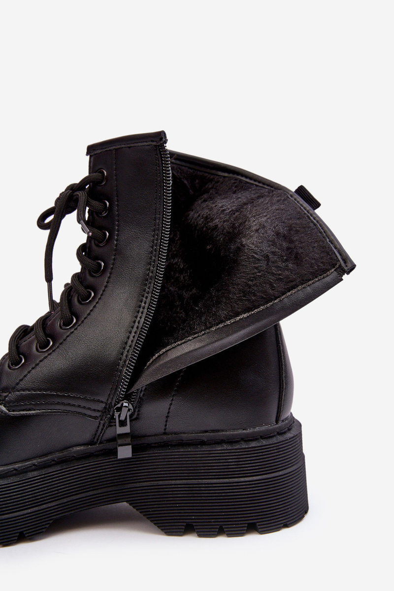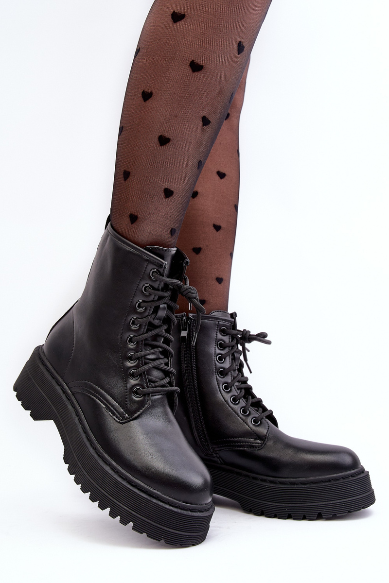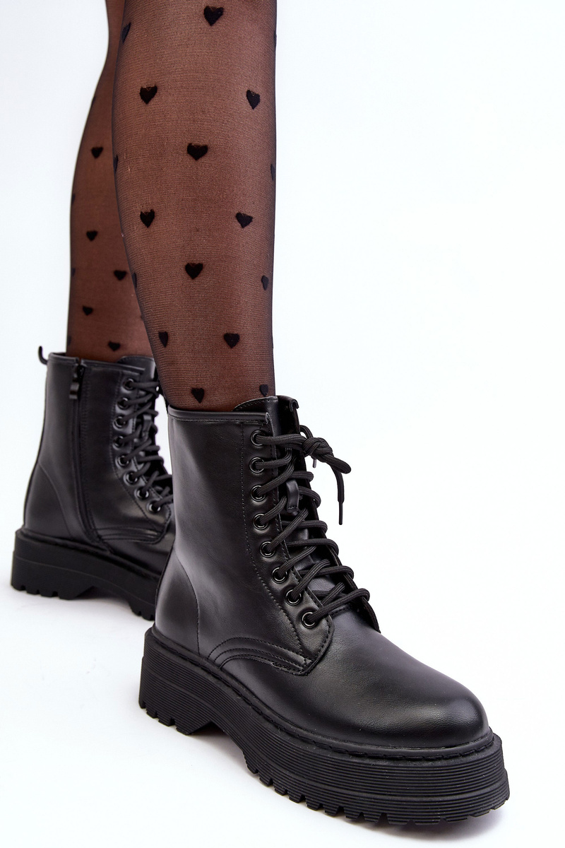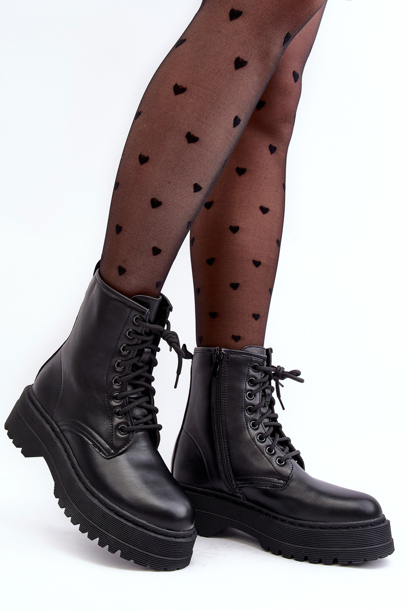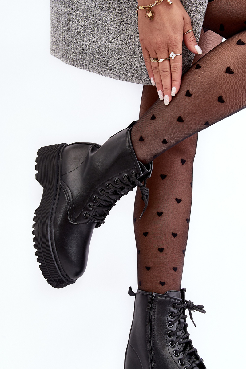 Жіночі ботильйони на шнурівці на товстій підошві чорного кольору Biancis