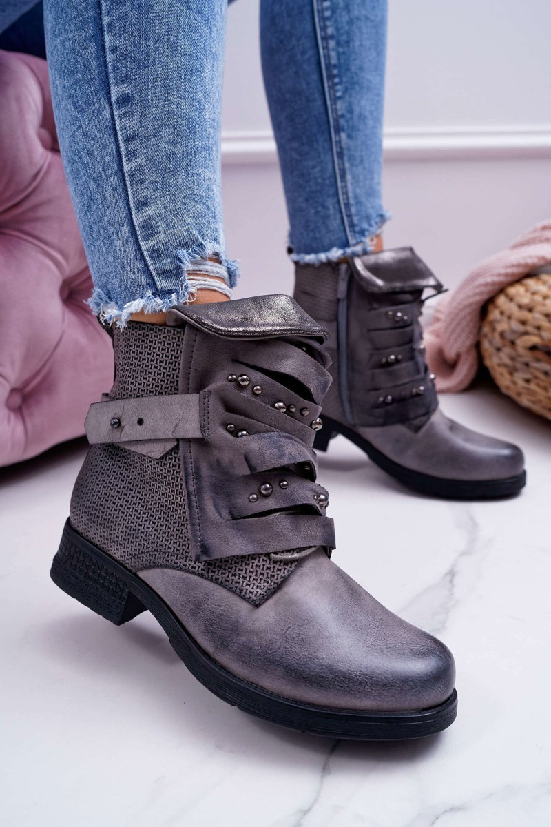 Надзвичайно зручні та модні черевики. Класичний дизайн, прикрашений сріблястими стразами зверху. Чоботи на плоскому каблуці, які ідеально впишуться в багато стилів. Утеплений всередині у вигляді ковдри для взуття. Застібається на блискавку. При виборі розміру вказуйте таблицю розмірів.