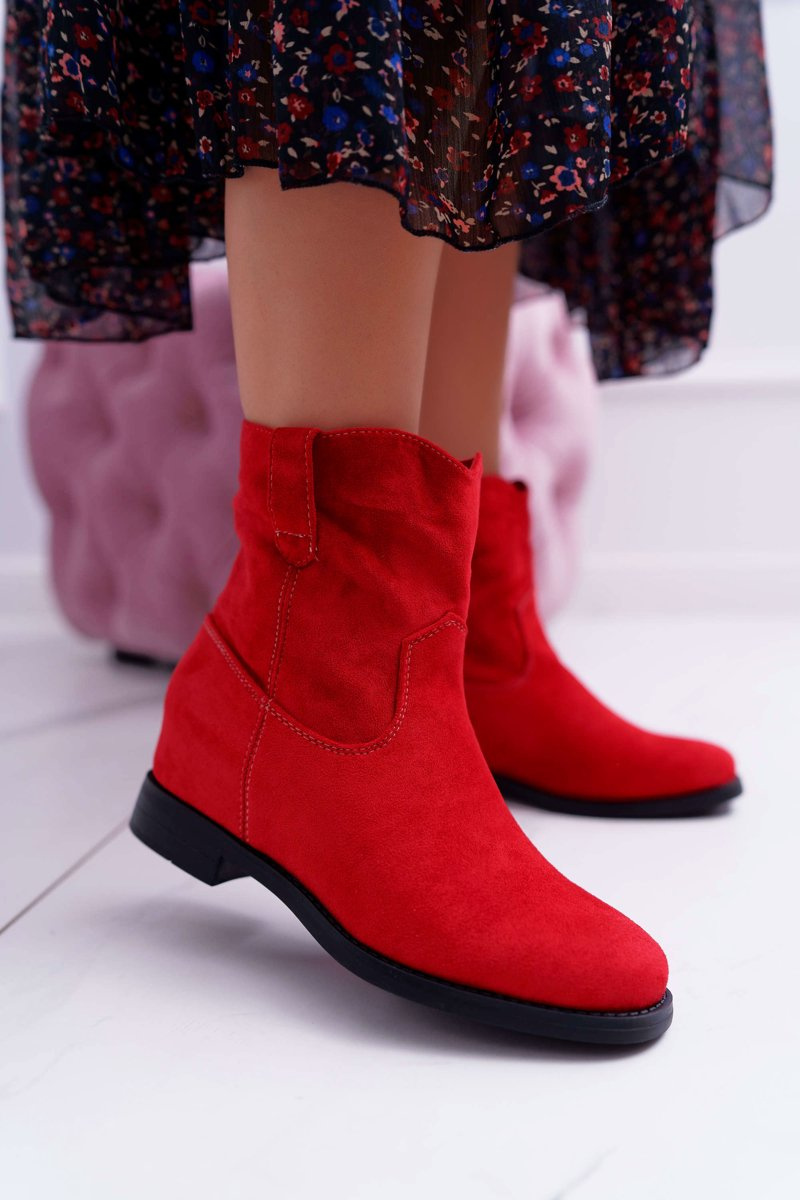 Жіночі ботфорти на шпильці Плоский каблук Утеплені до щиколотки Червоні деміні
