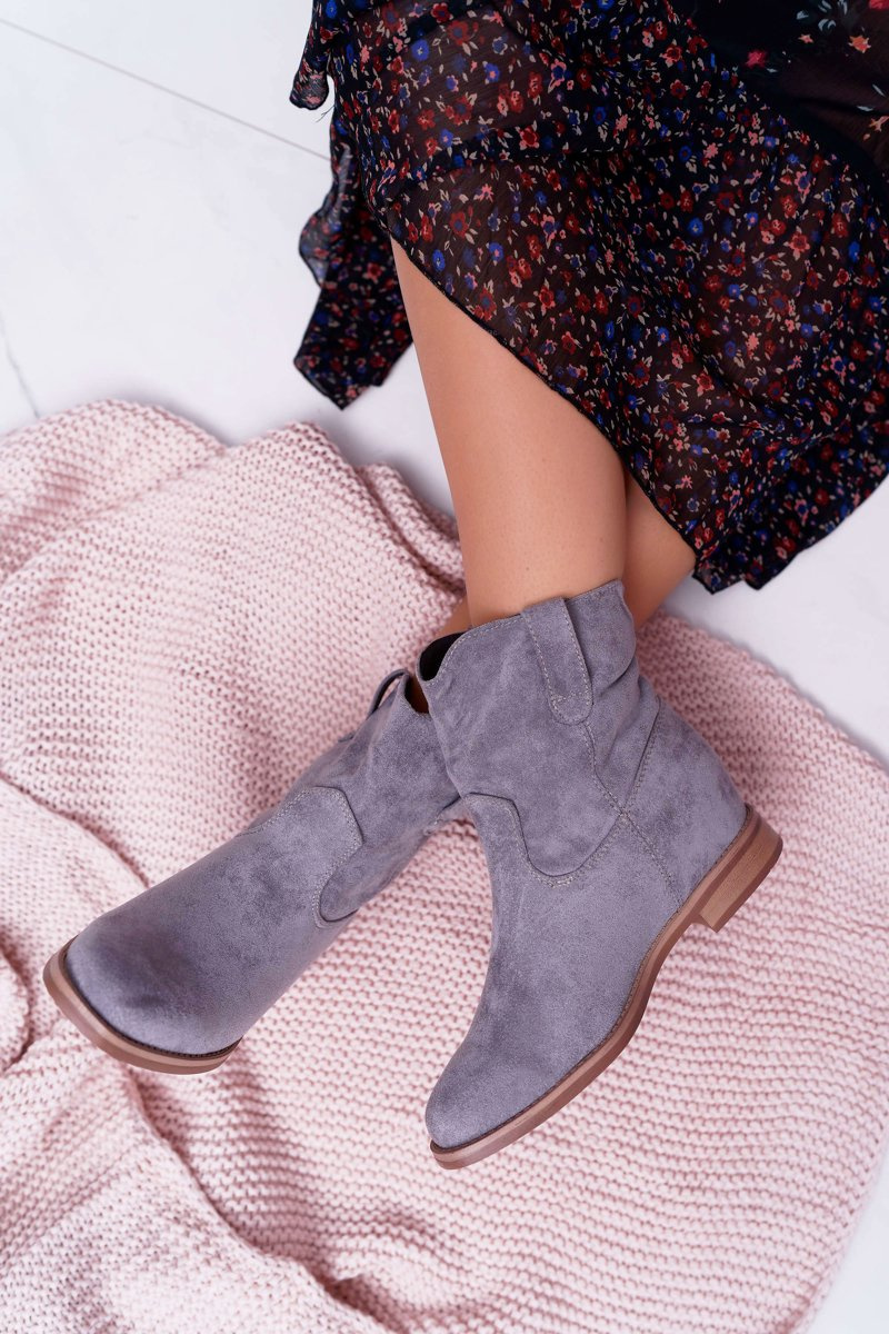Жіночі ботфорти на щиколотці, утеплені поверх щиколотки, сірі деміні
