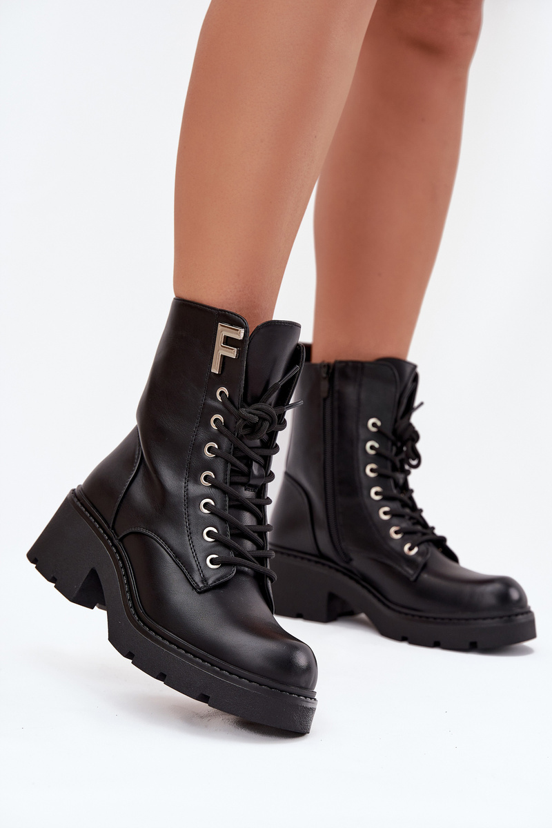 Жіночі ботінки Workery на блоковому каблуці утеплені з літерою F чорні Lurina