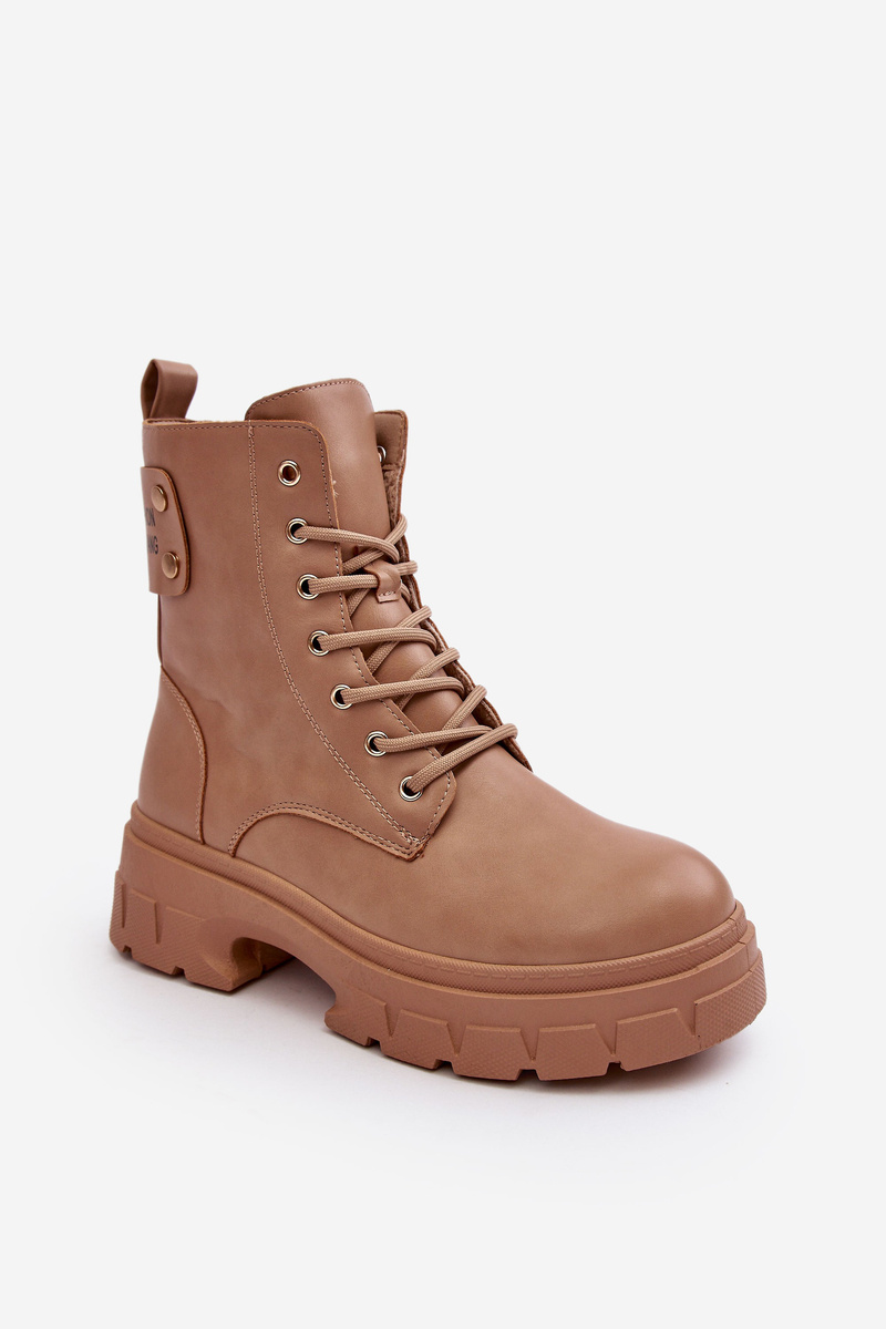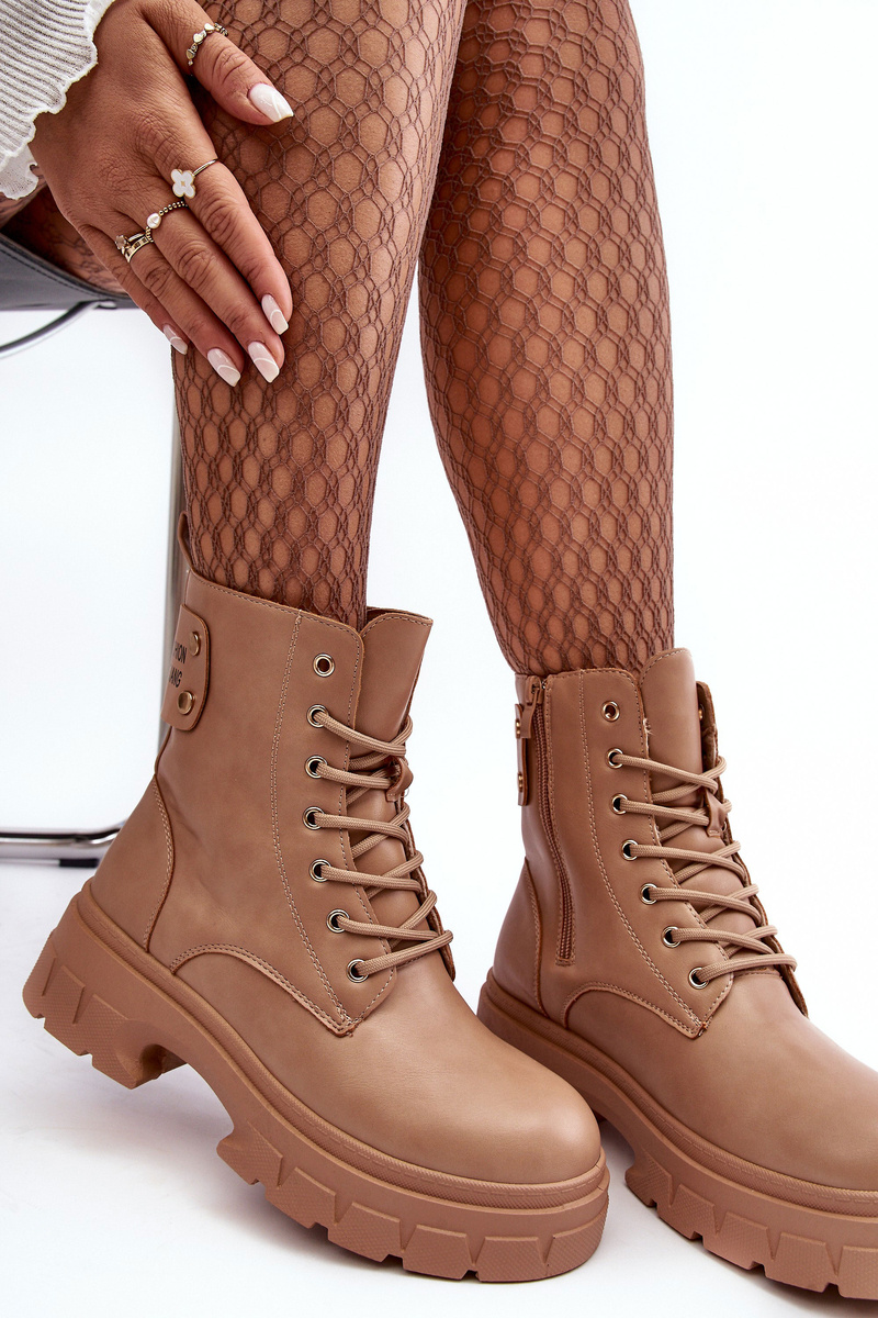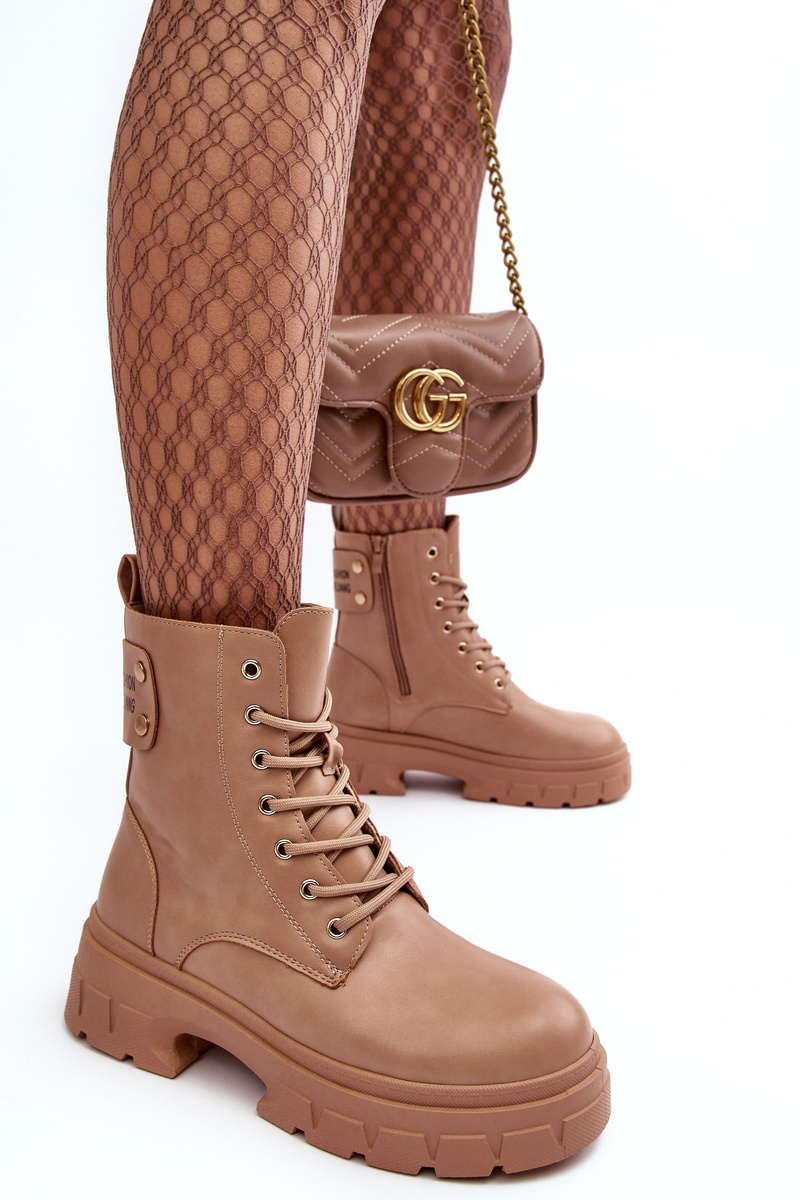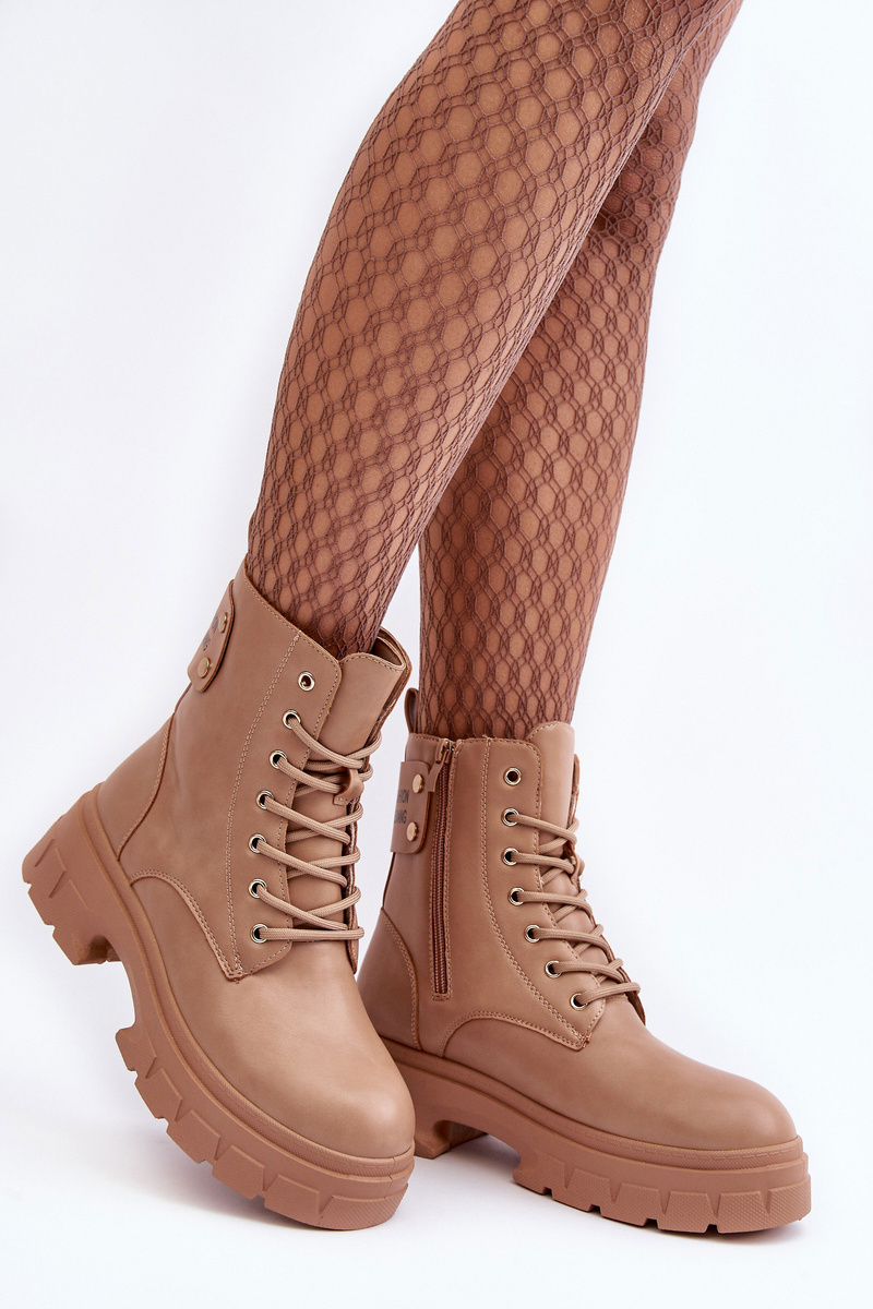 Жіночі броги на шнурівці на плоскій підошві бежеві Brenhile