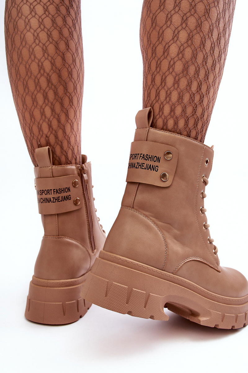 Жіночі ботильйони на плоскому каблуці та платформі. Виготовлена ​​з еко шкіри. Шнурівка спереду та додаткова застібка на блискавку. Утеплений підкладкою. Товстий ремінь з написом на задній частині верху. Чудова модель для осінньо-зимових стилізацій! При виборі розміру орієнтуйтеся на таблицю розмірів.