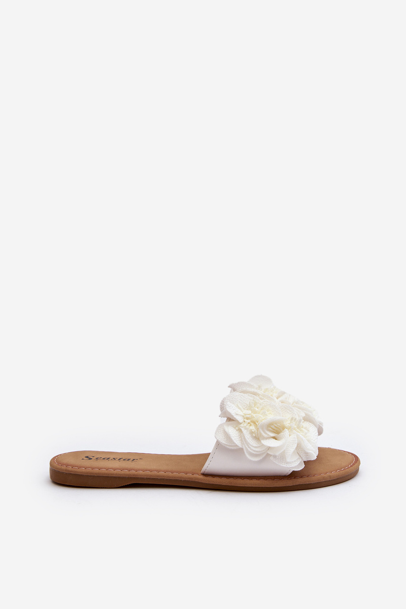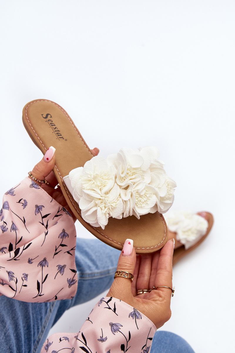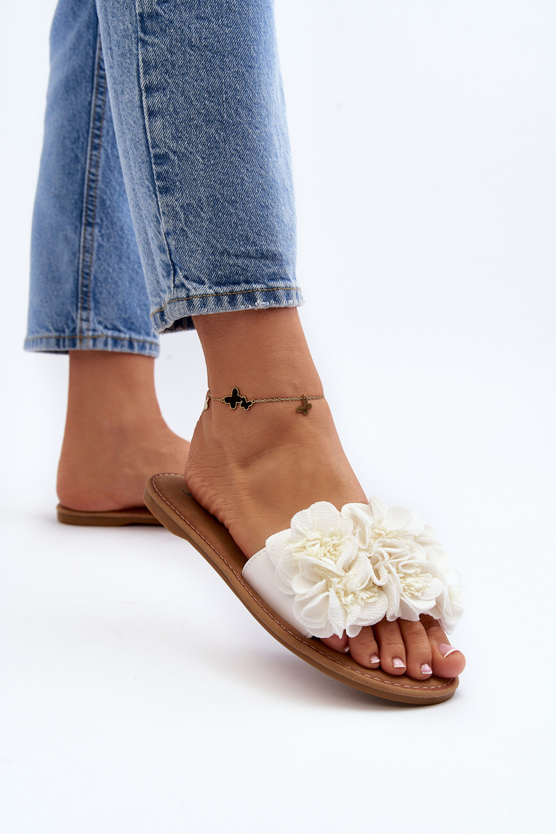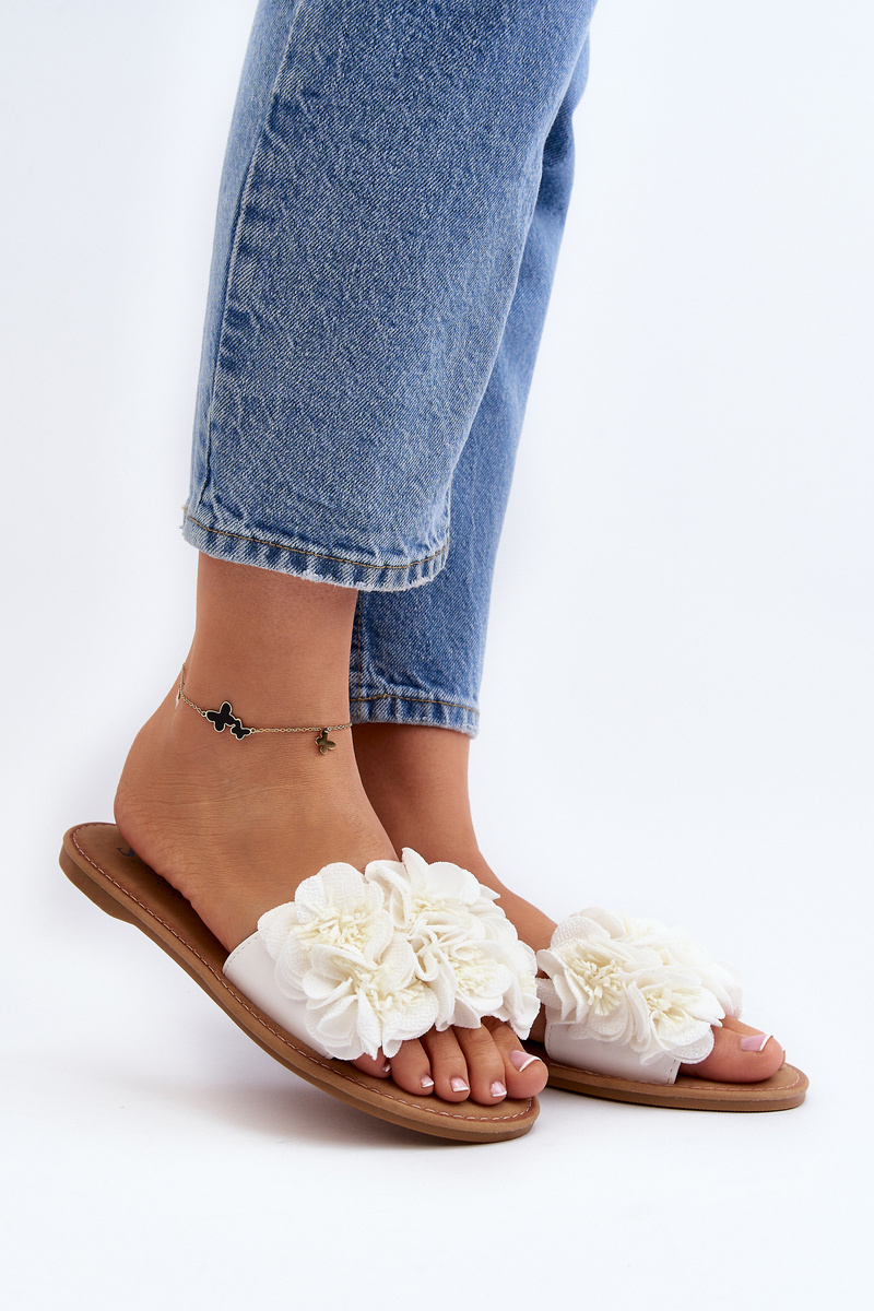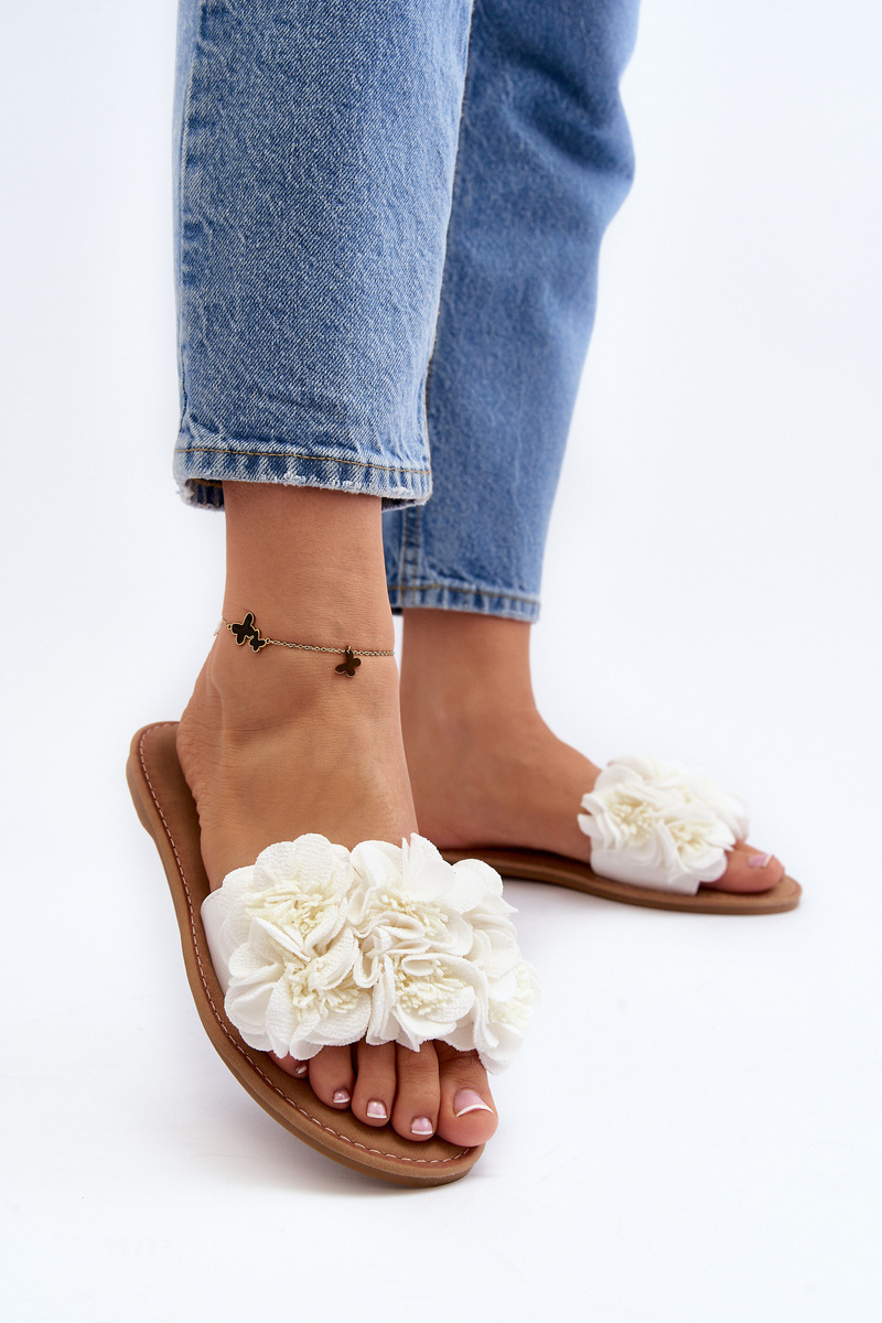 Ці чарівні шльопанці стануть ідеальним доповненням до вашого літнього гардеробу. Їх плоска каблук забезпечує комфорт під час носіння, що робить їх ідеальними для літніх прогулянок або зустрічей з друзями. Фронт, прикрашений квітами з тканини, надає їм ніжності та дівочого шарму, що чудово доповнює літню атмосферу. Крім того, м'яка устілка з екошкіри забезпечує комфорт і зручність під час використання навіть протягом тривалого часу. Обираючи розмір, орієнтуйтеся на таблицю розмірів.