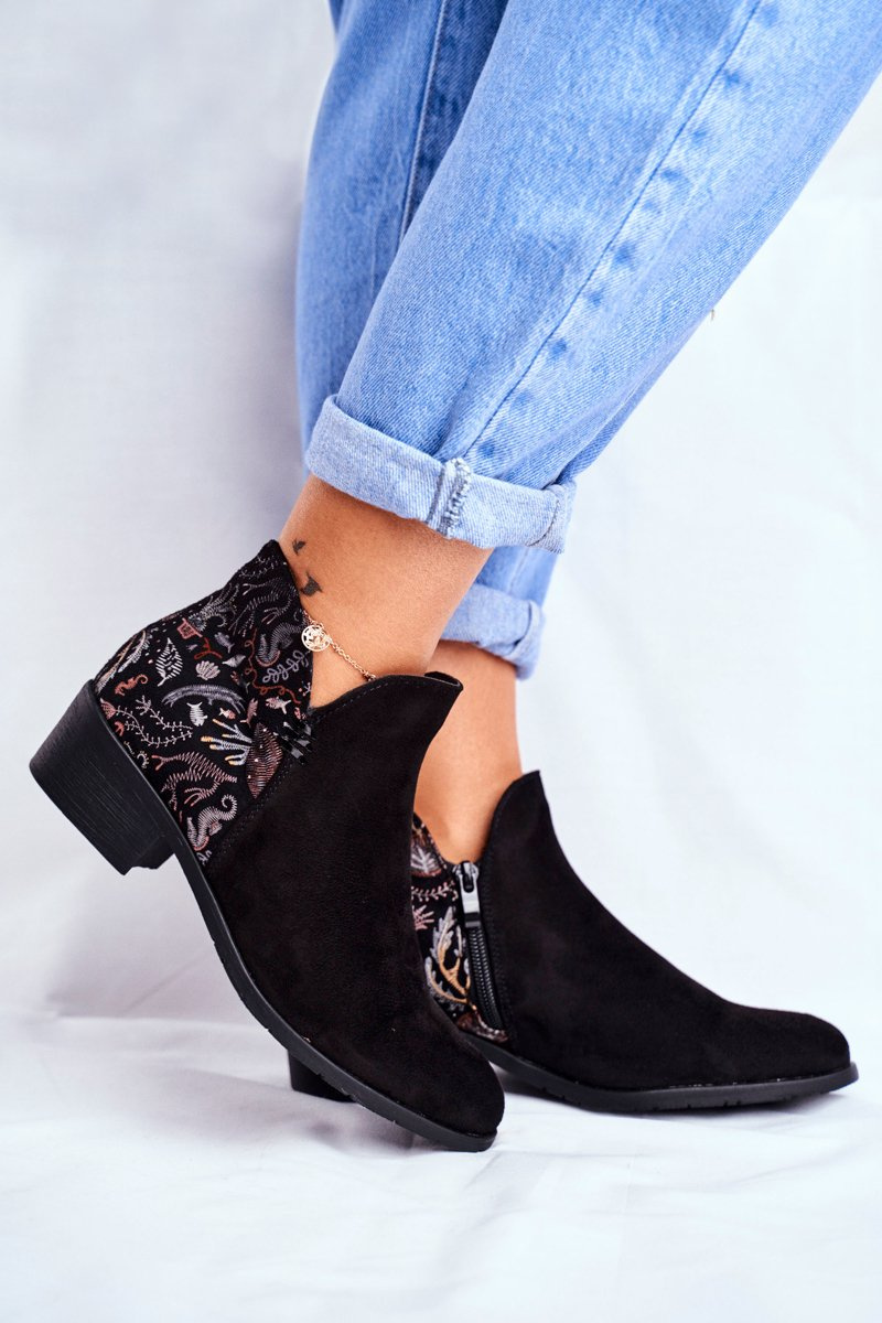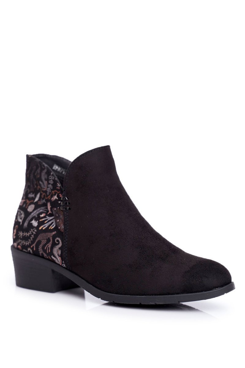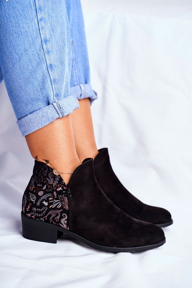 Колекція наших черевиків знову поповнилася! Модель з останньої колекції може бути твоєю! Матеріальна устілка і внутрішня частина, покрита м'якою тканиною, не захочуть їх знімати. Надягання полегшить вшита збоку блискавка. Завдяки красиво декорованому каблуку вони підійдуть до будь-якого стилю, як до джинсів, так і до сукні. Ознайомтеся з усім асортиментом черевиків, які ми пропонуємо. При виборі розміру вказуйте таблицю розмірів.