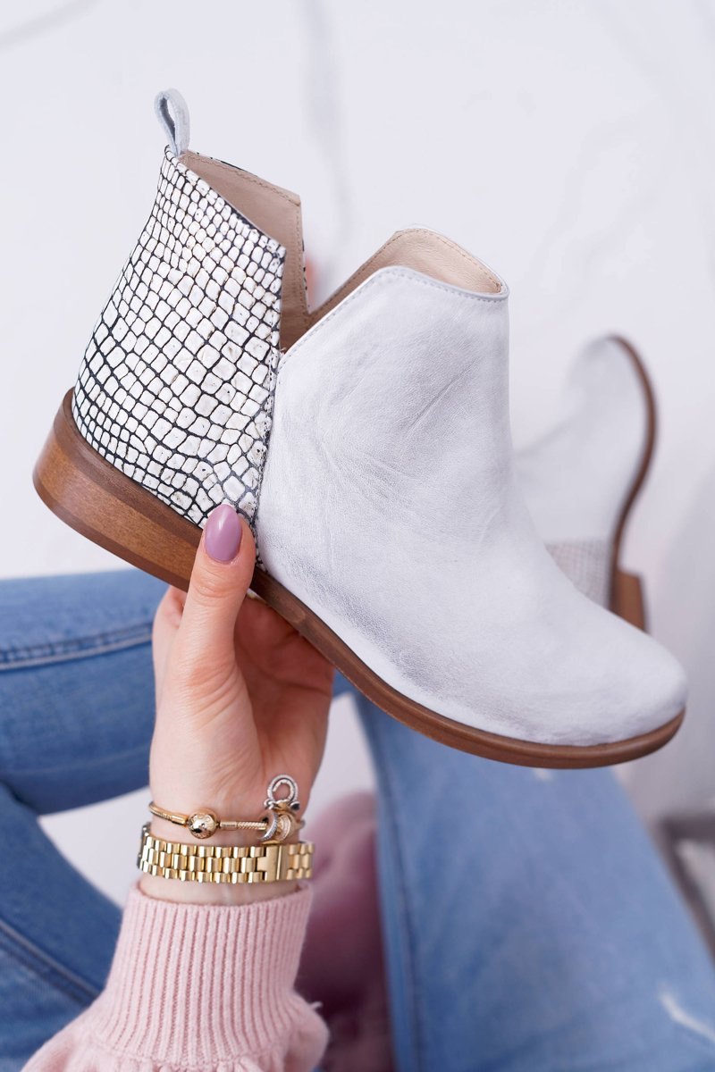 Черевики — це не лише взуття для холодних днів. Також вони чудово підходять для весняної укладки. Черевики мають тонкі вирізи на висоті щиколоток. Плоский каблук і візерунок зі шкіри крокодила, який став дуже модним в цьому сезоні. Черевики повністю виготовлені з натуральної шкіри. Польський продукт, який гарантує комфорт і високу якість виконання. Ідеальний варіант для повітряних суконь і джинсових штанів. При виборі розміру вказуйте таблицю розмірів.