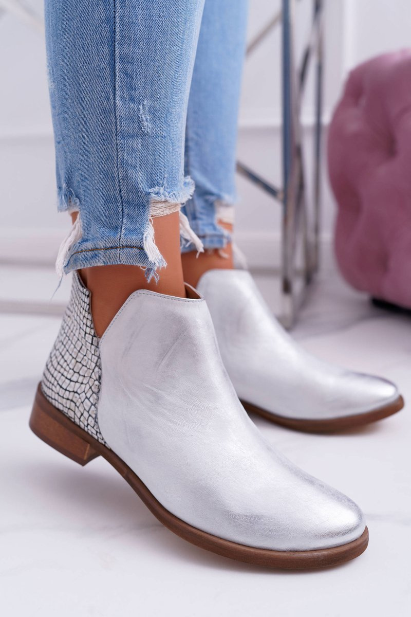 Жіночі весняні шкіряні черевики на плоскому каблуці Silver Madness