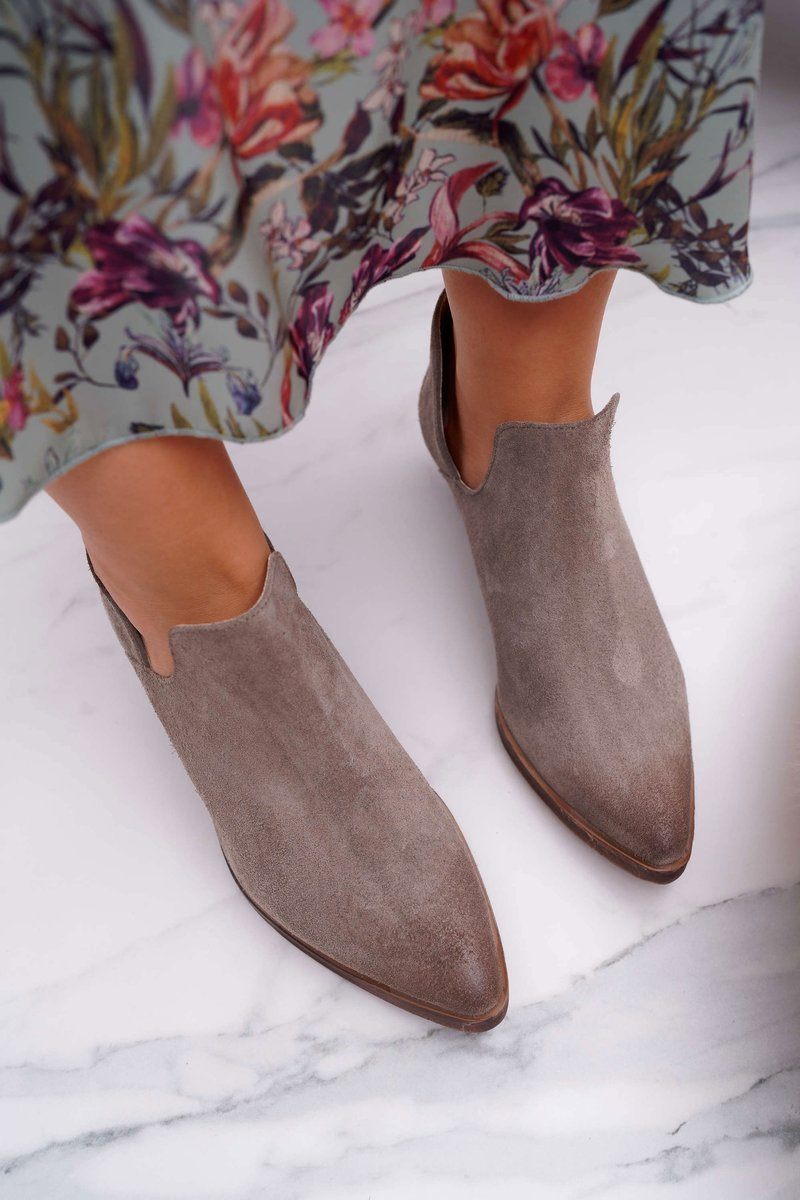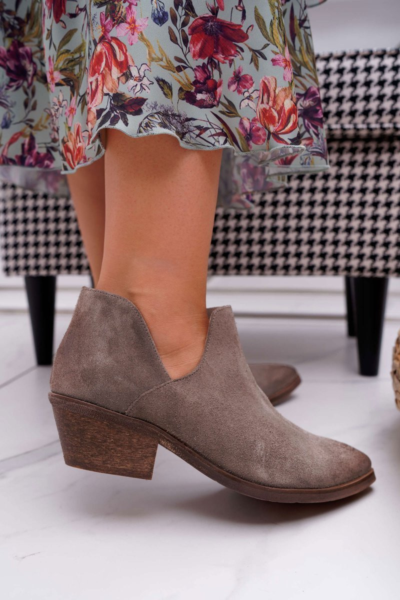 Черевики — це не лише взуття для холодних днів. Також вони чудово підходять для весняної укладки. Черевики мають витончені вирізи на висоті щиколотки та плаский каблук, який став дуже модним у цьому сезоні. Черевики повністю виготовлені із замшевої шкіри. Польський продукт, який гарантує комфорт і високу якість виконання. Ідеально підходить для повітряних суконь і джинсових штанів. При виборі розміру вказуйте таблицю розмірів.