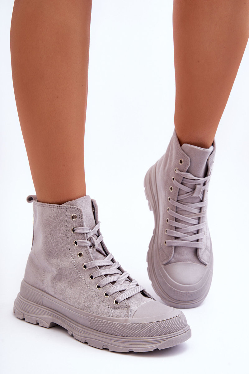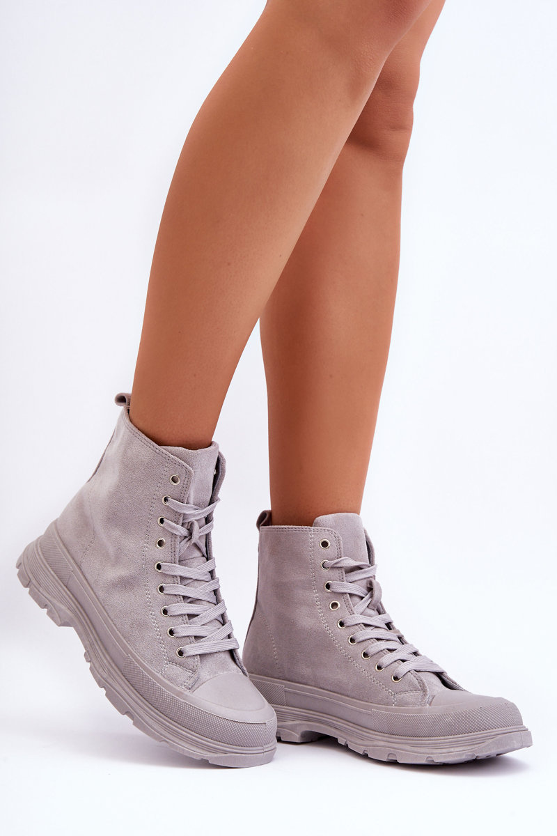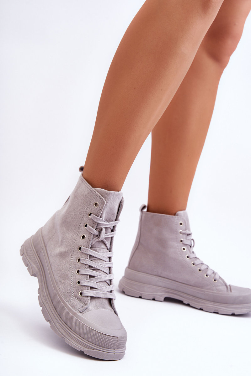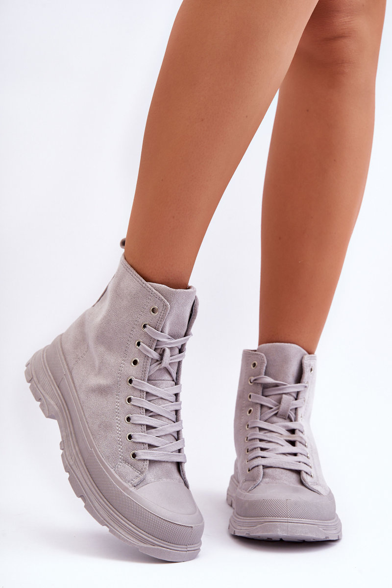 Жіночі високі замшеві кросівки сірі Eleamia