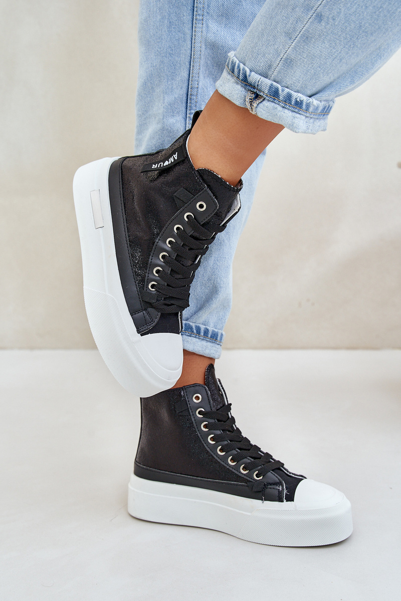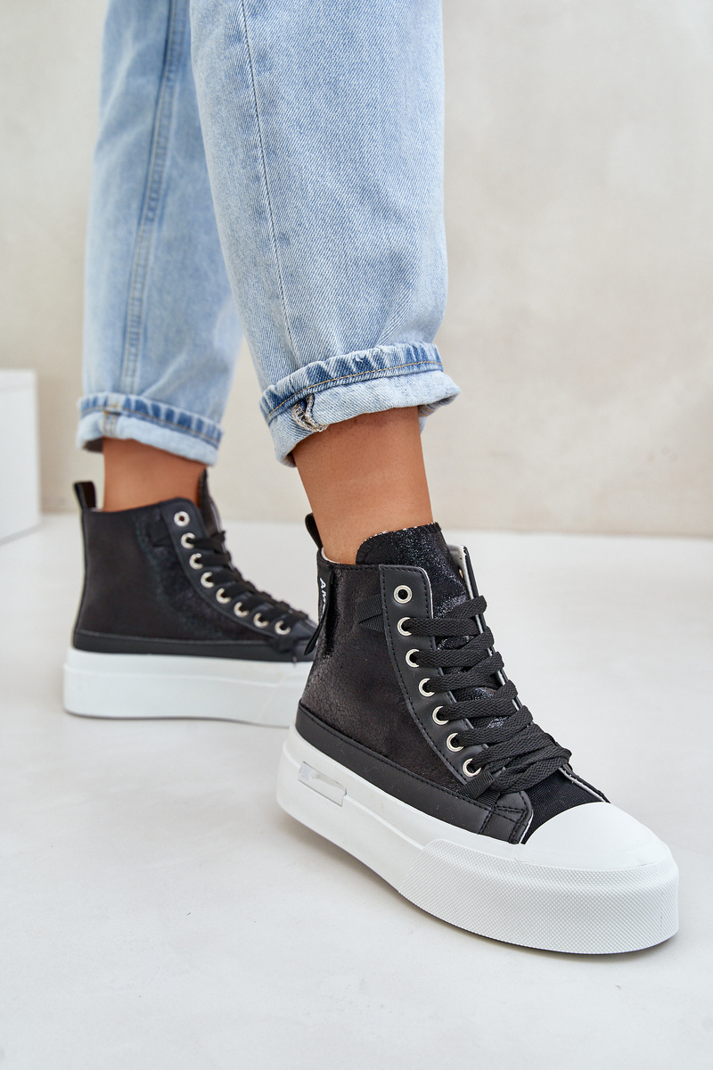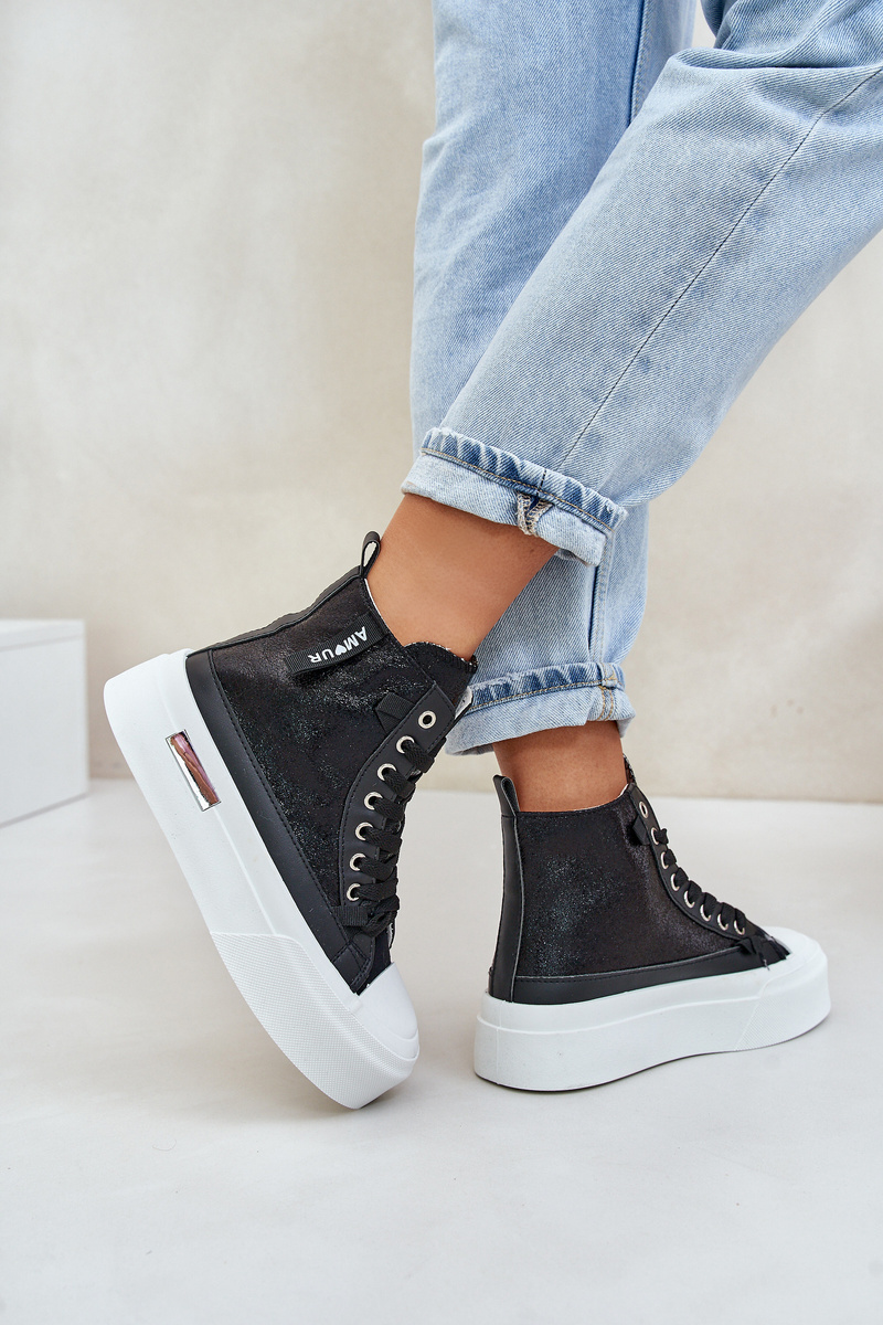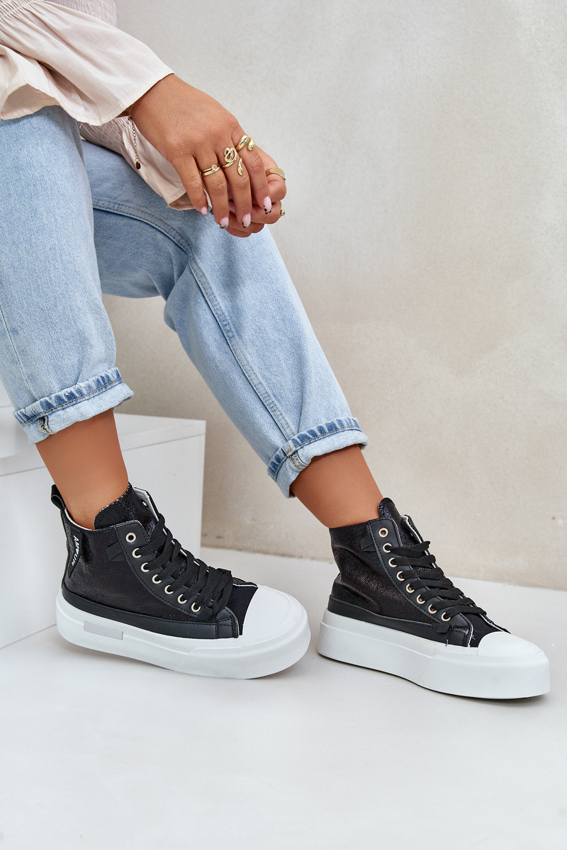 Стильні високі жіночі кросівки з текстилю обов'язково повинні бути у вашій колекції. Масивна гумова платформа забезпечує не тільки винятковий вигляд, але й комфорт під час носіння. Ця модель гарантує, що ви закохаєтесь в неї з першого носіння! Обираючи розмір, орієнтуйтеся на таблицю розмірів.