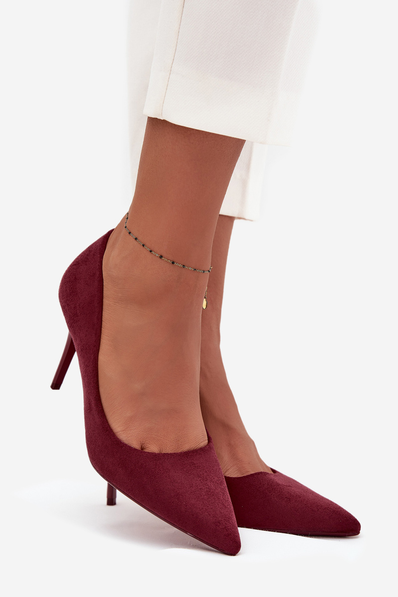 Жіночі високі підбори з еко замшу бордові Elvessa