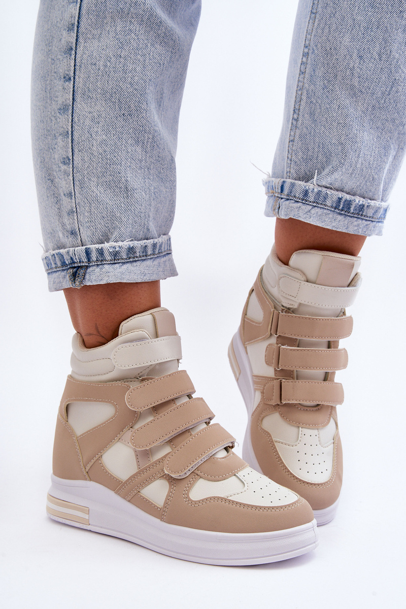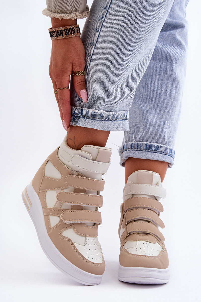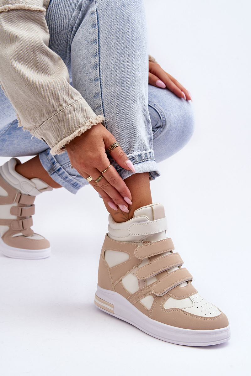 Жіночі високі спортивні туфлі на прихованій танкетці Бежеві Inari