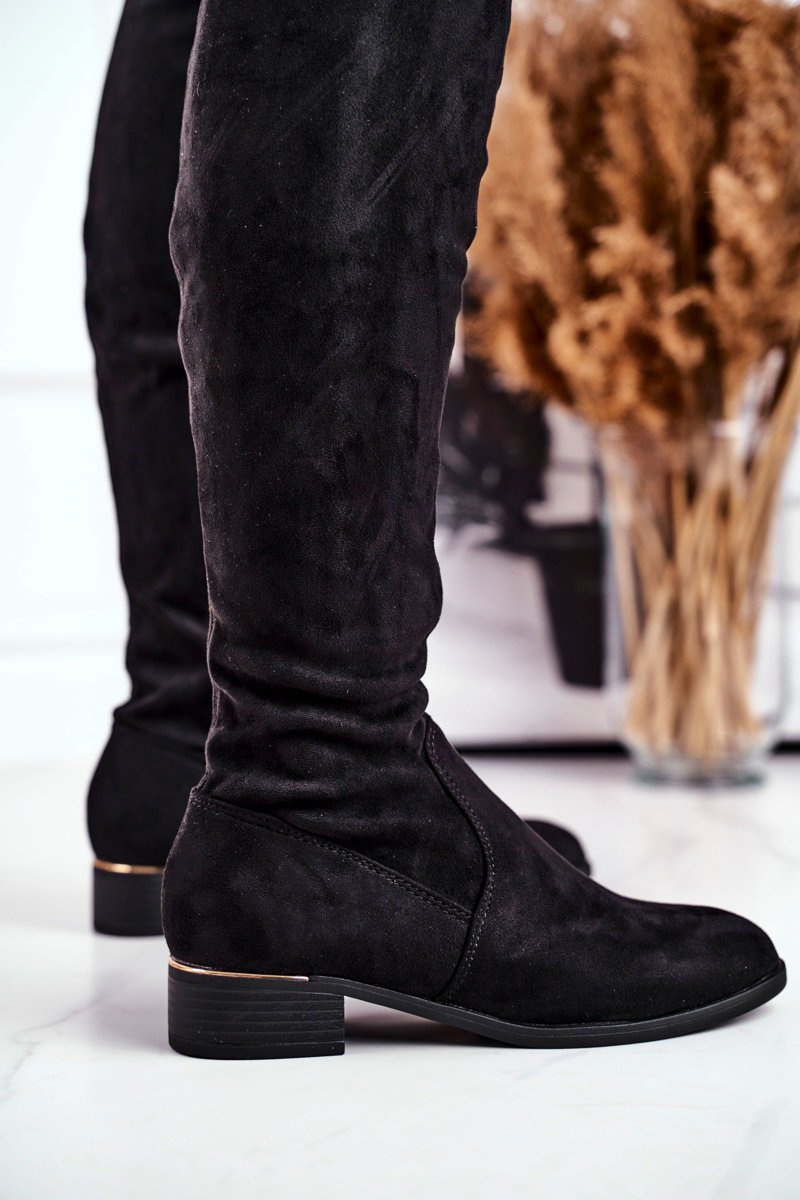 Жіночі високі чоботи вище коліна з еко-замші Black Dove