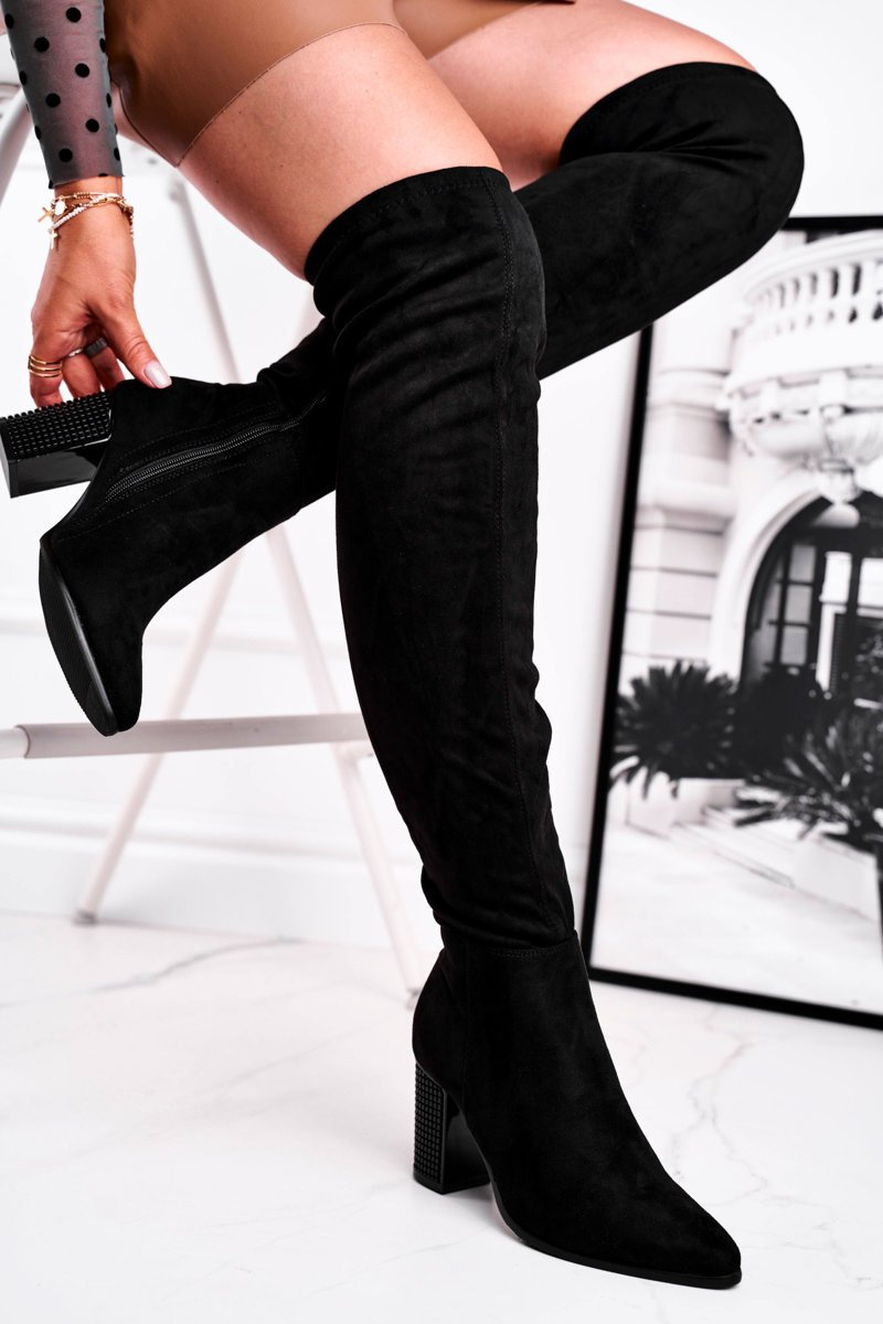 Жіночі високі чоботи замшеві чорні Victoria