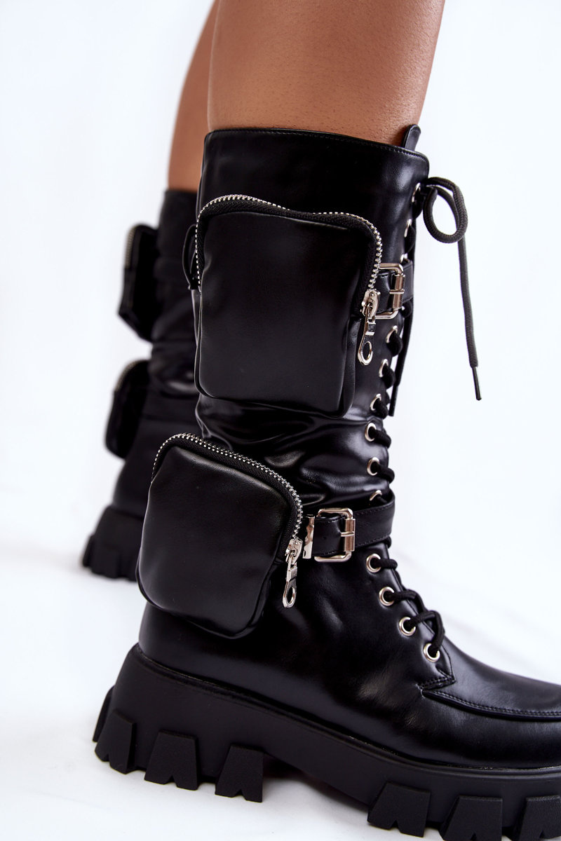 Чудові чоботи з повною шнурівкою та блискавкою. Модний крій до середини ікри. Черевики виготовлені з еко шкіри. Вони кріпляться на плоскій каблук і платформу з канавками. Підборник посилений. Черевики не утеплені. Вставка виконана з текстильного матеріалу. При виборі розміру скористайтеся таблицею розмірів.