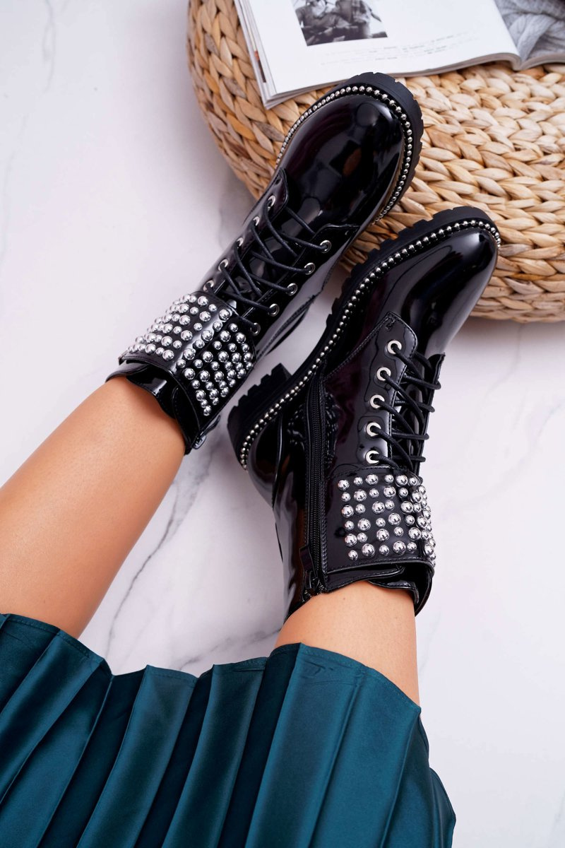 Якщо ви прийшли сюди, це означає, що ви шукаєте модне та зручне взуття для холодних днів. Високий верх застібається збоку з красивим декором у вигляді намистин. Можливість кращої посадки завдяки використанню шнурків, які, завдяки тому, що ховаються під клапаном з перлами, також створюють чудову прикрасу. Середина покрита приємною на дотик ковдрою для взуття. Ми любимо давати жінкам привід купити нову пару взуття, і ці черевики – лише один із них! Під час вибору розміру запропонуйте таблицю розмірів, яка доступна після наведення курсора на розмір або натискання на нього.