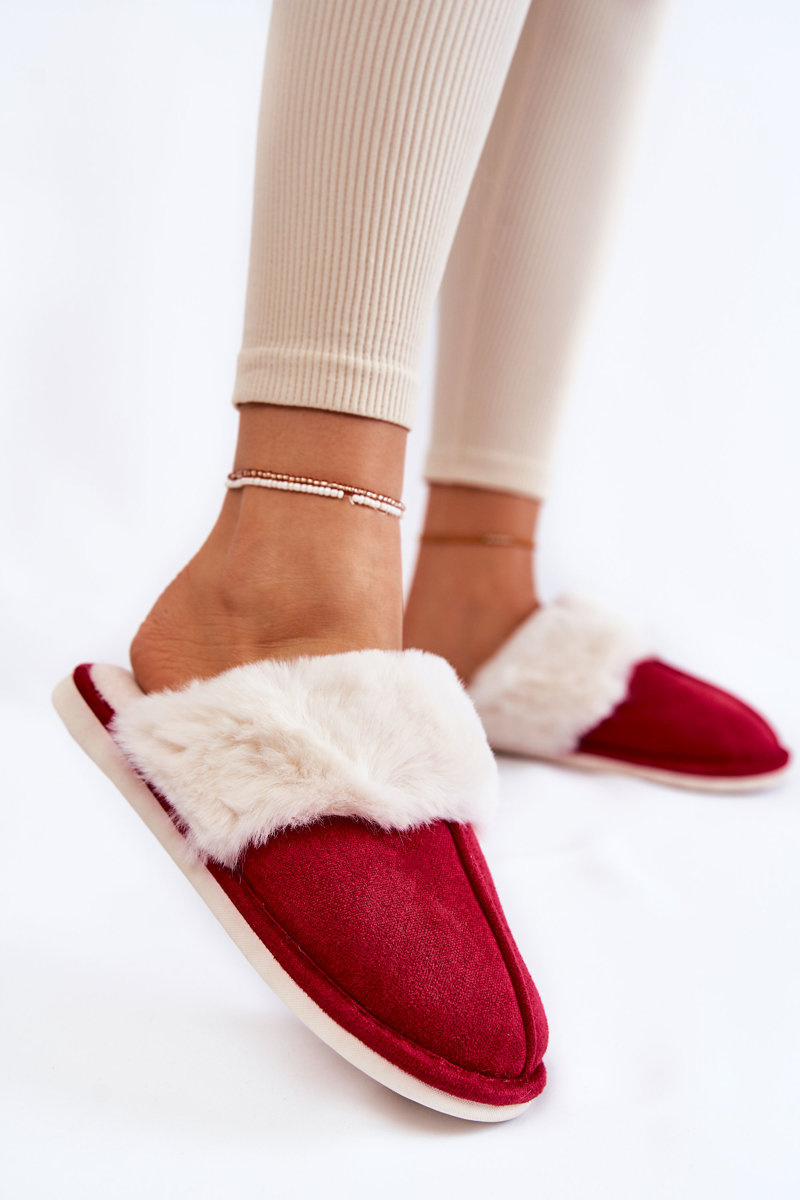 Жіночі гладкі тапочки з хутром червоного кольору
