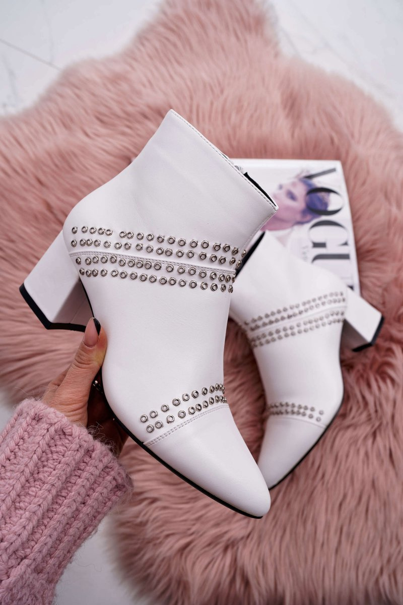 Жіночі гострі чоботи на шпильці білі Primma