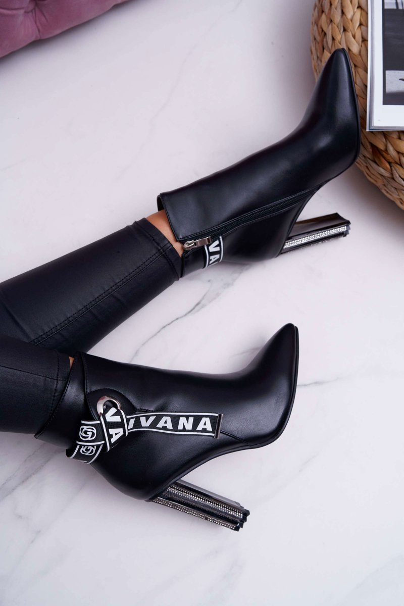 Подаруйте собі трохи розкоші та виберіть наші чудові черевики. Унікальний стиль чобіт на шпильці є частиною модних канонів у всьому світі. Утеплена внутрішньою ковдрою для взуття, забезпечить нам комфорт на кожному кроці навіть у холодні дні. Стилет прикрашений цирконами. Черевики чудово підійдуть для осіннього та літнього стилю. Під час вибору розміру дотримуйтеся таблиці розмірів.