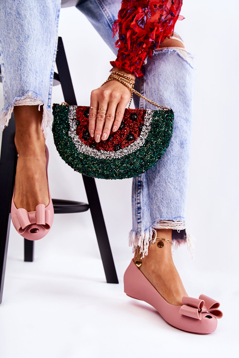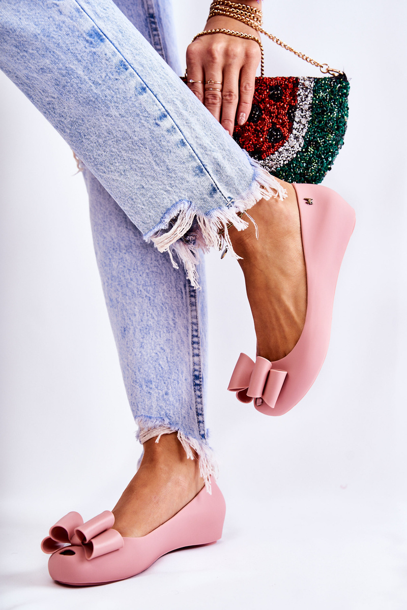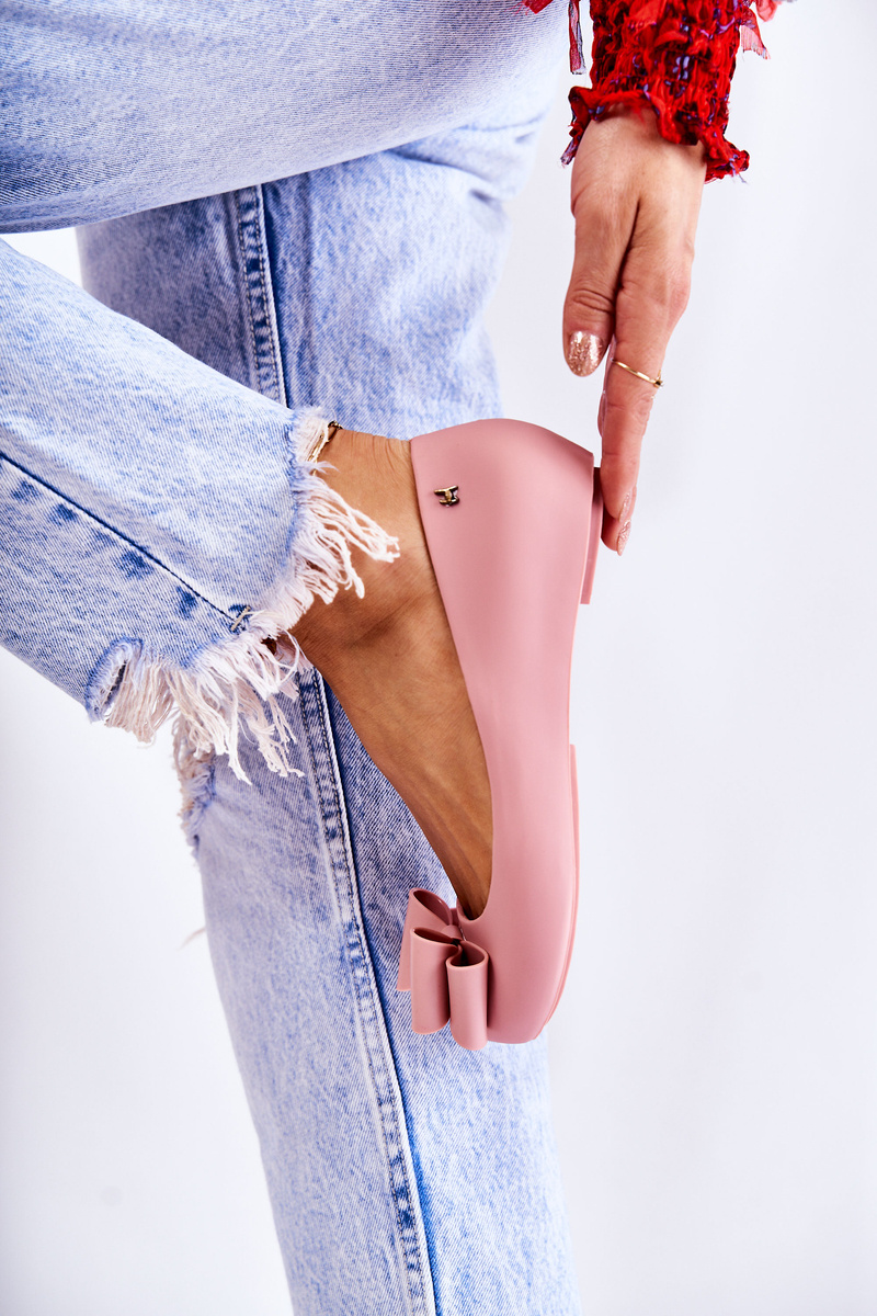 Унікальні балерини з декоративним бантом спереду. Крім того, на округлому носі є витончений виріз. Черевики виготовлені з гумового матеріалу. Балетки сидять на плоскому каблуці з нековзкою підошвою. М'яка устілка забезпечить комфорт під час використання. Збоку на верху є декоративний елемент. Такі балерини ідеально підходять для будь-яких урочистостей. При виборі розміру скористайтеся таблицею розмірів.