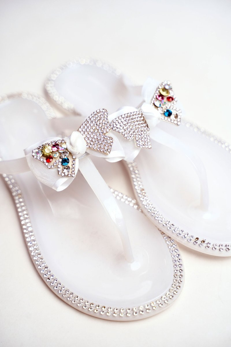 Наймодніші гумові тапочки цього сезону дозволять вам створювати тренди. Чудовий візерунок дозволить почуватися на червоній доріжці! Верх і вставка виконані з ніжного гумового матеріалу, а додатковим декором є сітка, що виступає з-під бантів. Ви тільки подивіться, як вони гарно сяють! Ми не можемо порахувати, скільки цирконів було використано для створення цієї чудової моделі. Сяє в літньому сонці і не пропускає нікого байдужим. Під час вибору розміру пропонуйте таблицю розмірів.