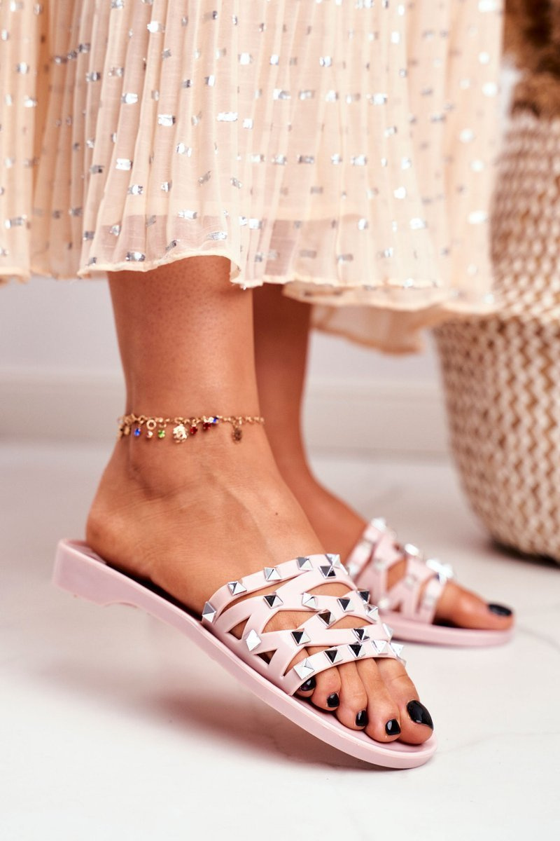 Тапочки - це вже невід'ємний елемент літніх стилізацій. Верхній елемент клапана покритий безліччю мерехтливих металевих шпильок, які виглядатимуть приголомшливо у світлі літнього сонця. Чи можете ви уявити свій літній стиль без цих шльопанців? Ми ні! Ви вже знаєте, як виглядає ідеал літніх шльопанців! Під час вибору розміру пропонуйте таблицю розмірів.