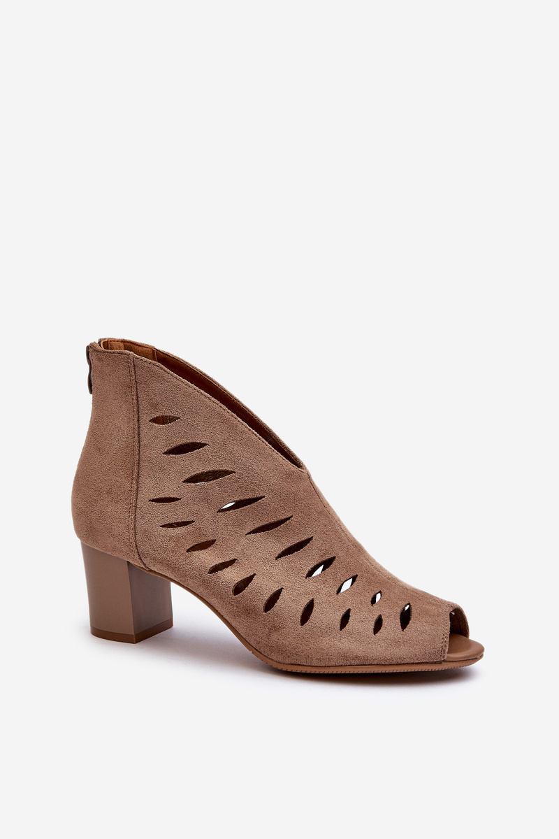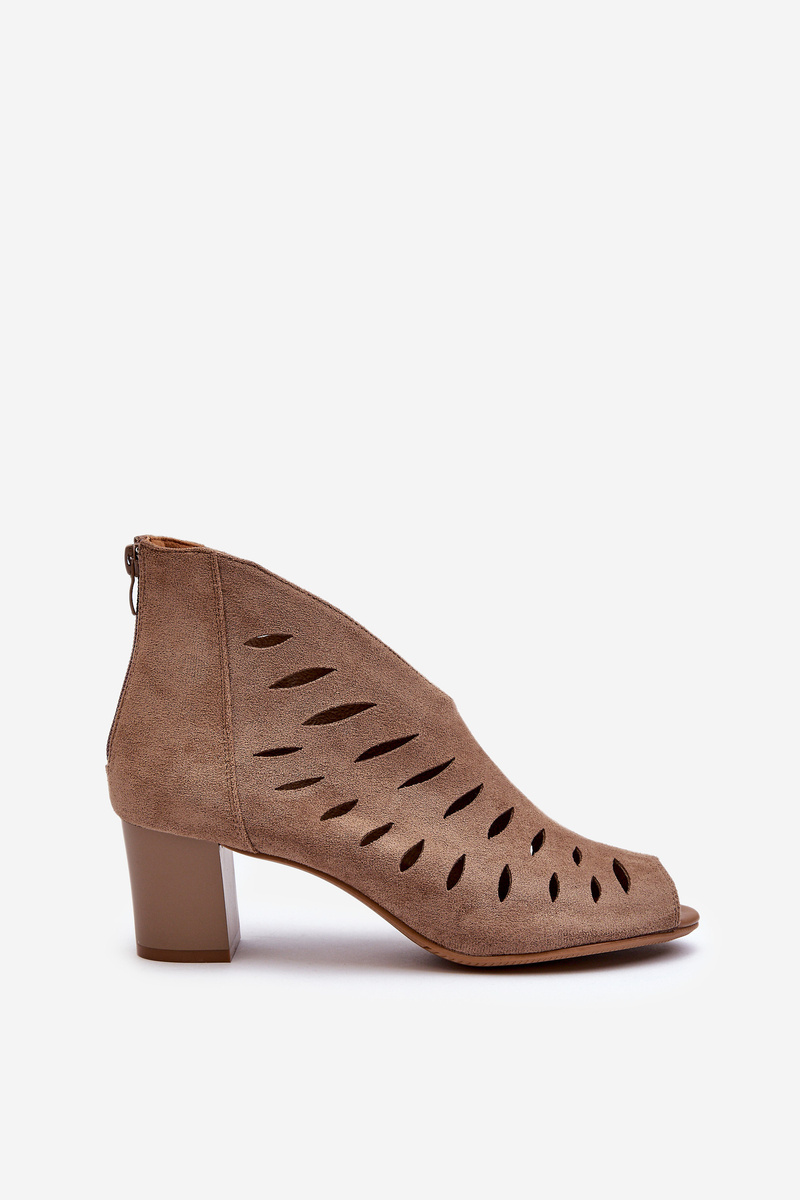 Черевики бренду Jezzi — це поєднання стилю та комфорту. Виготовлені з високоякісної екологічної замші, вони мають елегантний дизайн. Відкриті пальці і перфорований верх підкреслюють оригінальність моделі. Стійкий каблук у формі стовпчика забезпечує впевнений крок, а застібка на блискавку ззаду дозволяє легко одягати та швидко знімати чоботи. Ці черевики - відмінний вибір для жінок, які цінують модний вигляд.