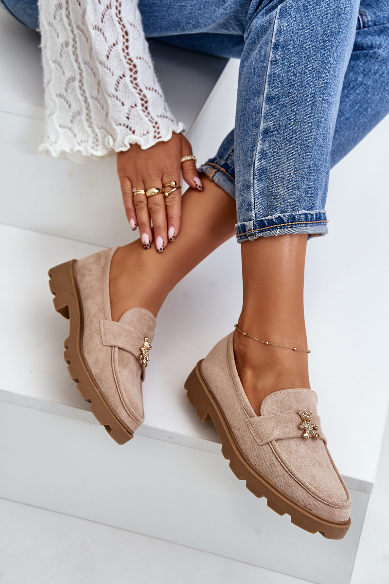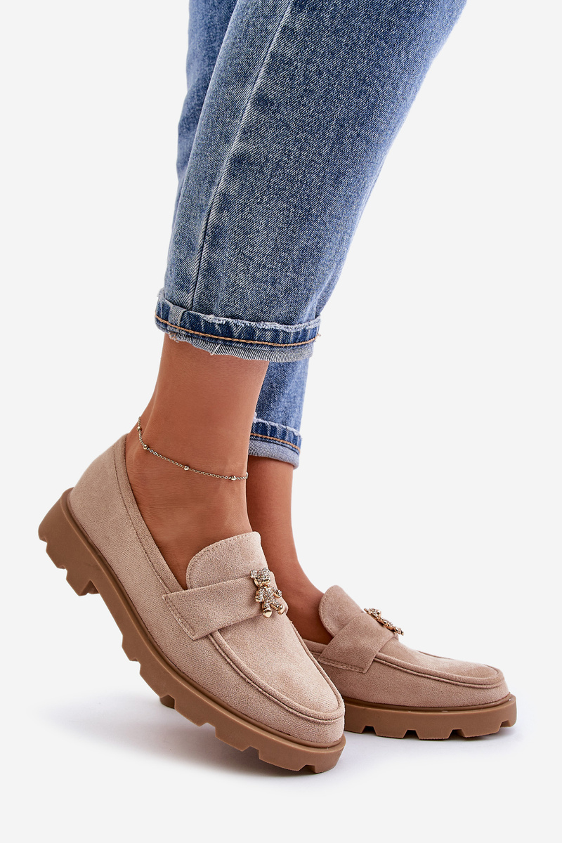 Жіночі еко-замшеві мокасини з ведмедиком бежевого кольору Kaithra