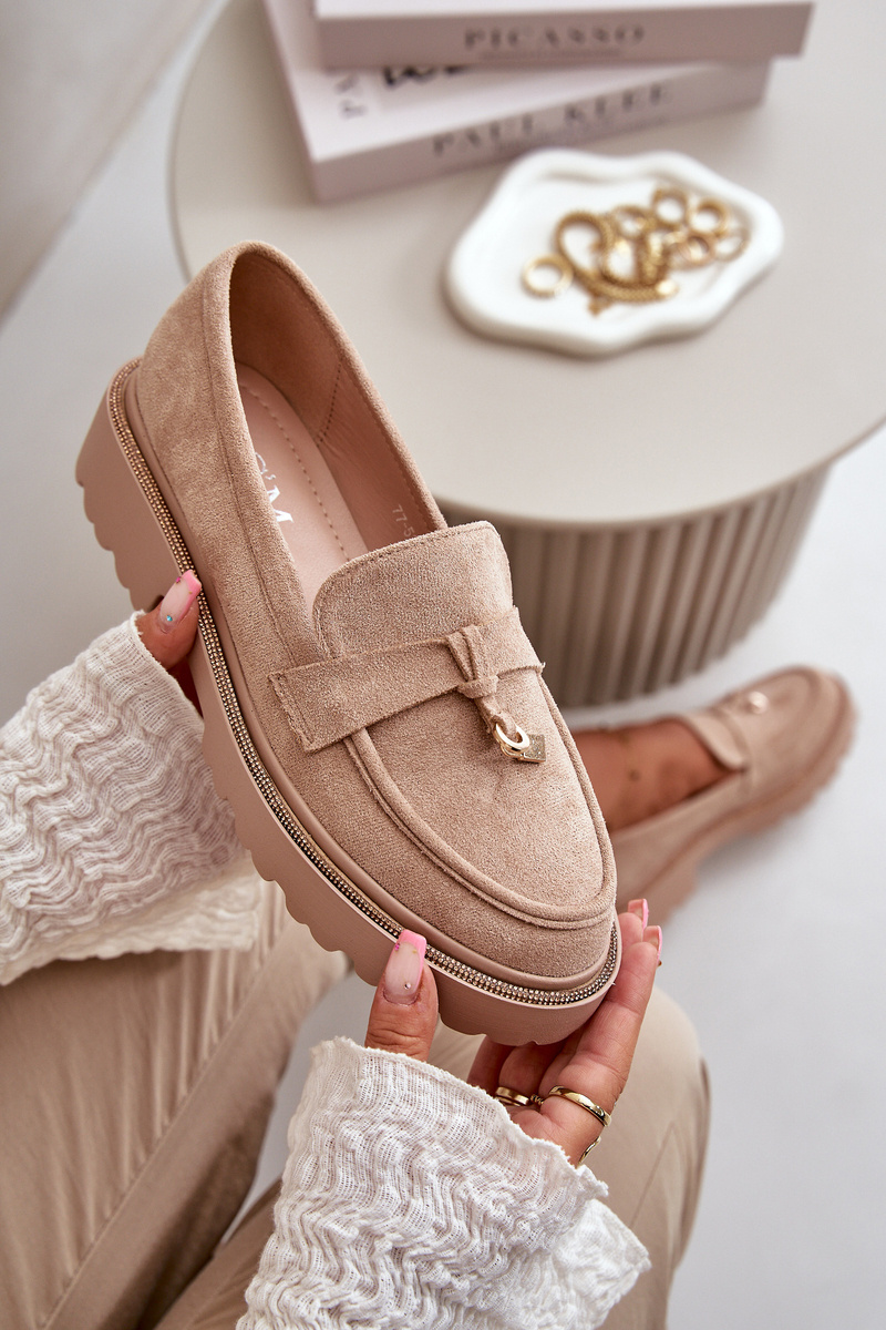 Жіночі мокасини з ніжними, блискучими прикрасами, які додають елегантності та тонкого шарму. Виготовлений з еко замші. Заокруглені пальці. Ця модель стане ідеальним доповненням як до повсякденного, так і до більш офіційного образу. Обираючи розмір, орієнтуйтеся на таблицю розмірів.