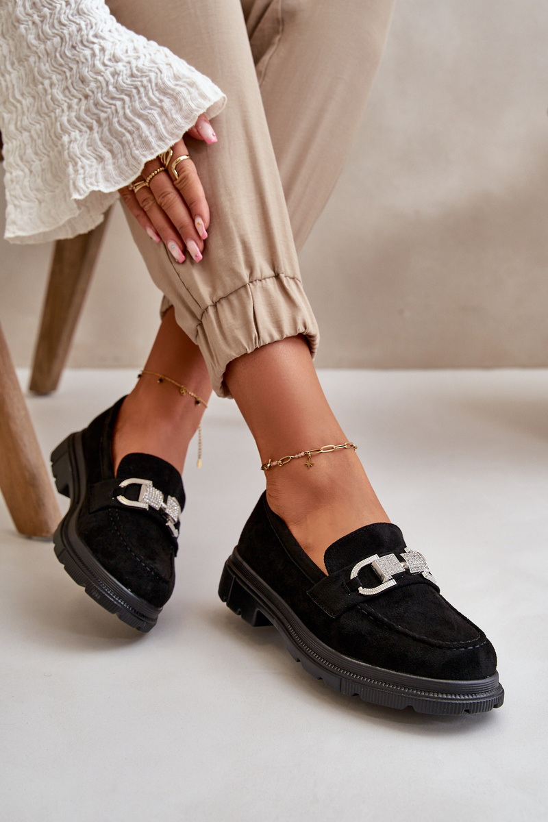 Жіночі еко-замшеві мокасини з декором чорна гліцина
